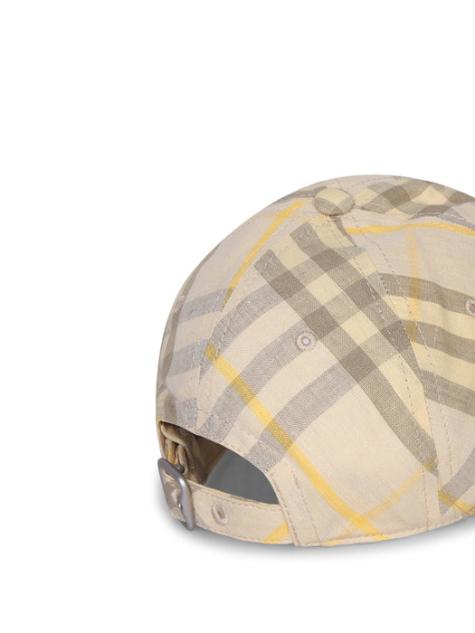 Beige Check Linen Baseball Cap