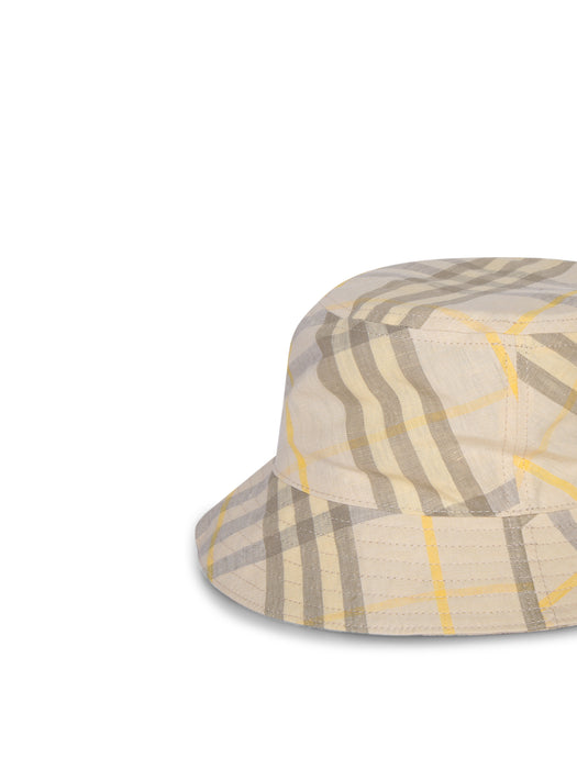 Beige Check Linen Bucket Hat