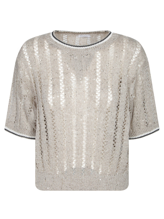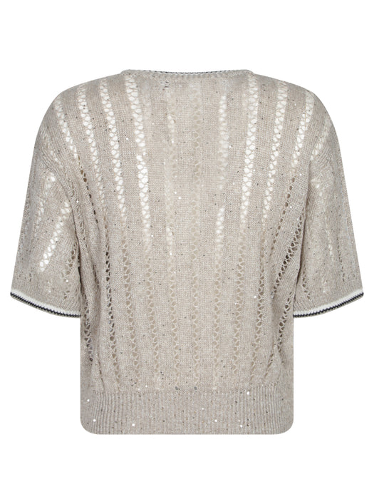 Beige Lurex Crochet Sweater
