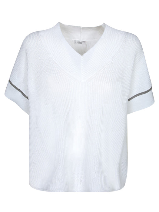 White Wool V-Neck Sweater