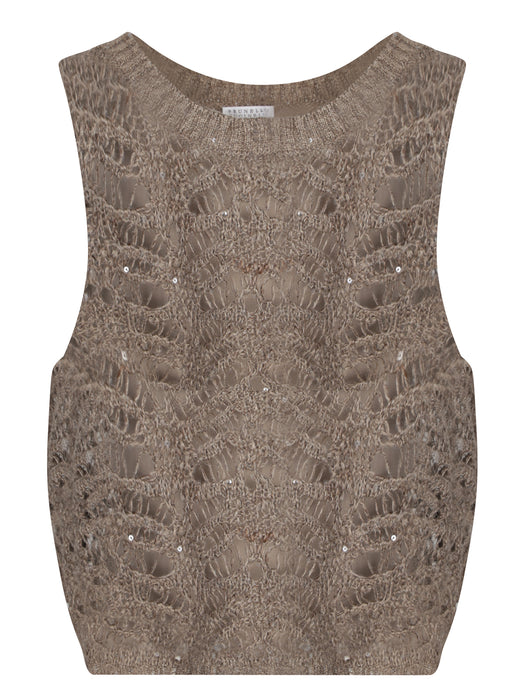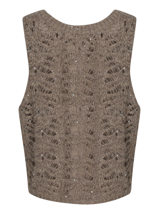Taupe Crochet Paill Top