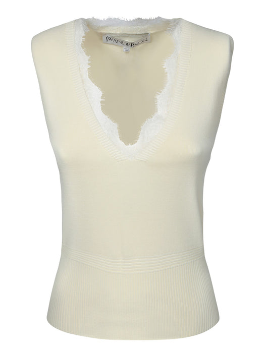 Ivory Lace Trim Vest