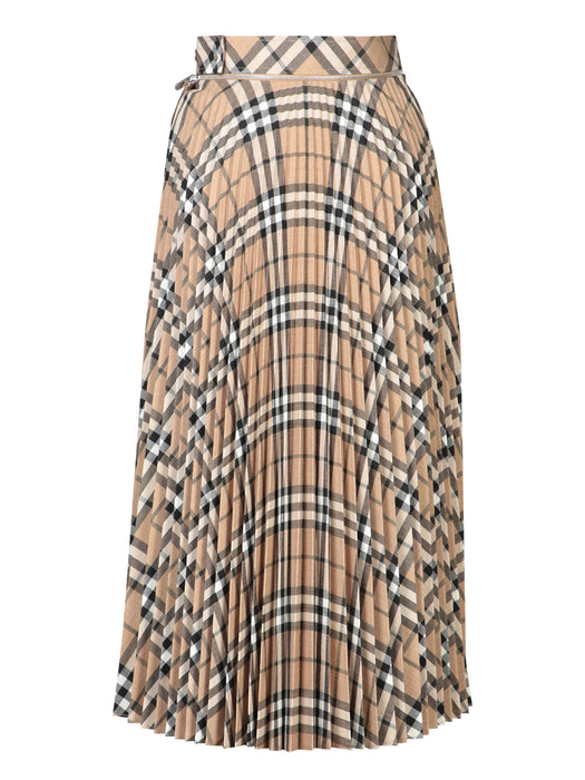 Beige Checked Pleated Midi Skirt