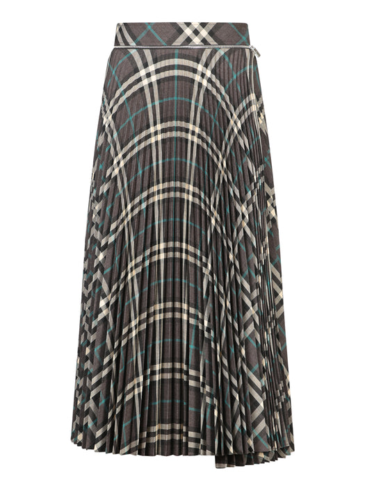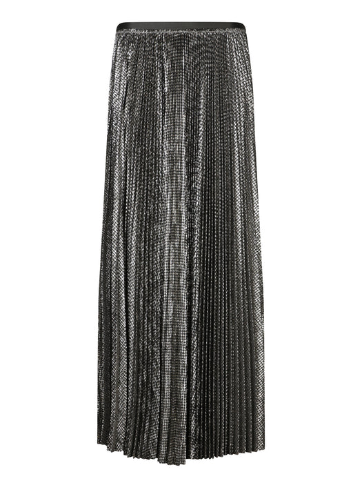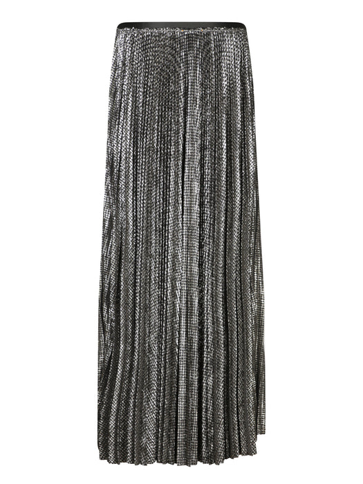 Black Check Pleated Midi Skirt