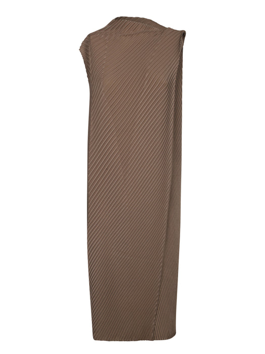 Glossed Metal Pleats Midi Dress in Khaki