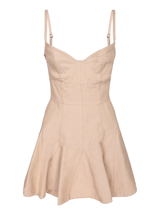 Flouncy Beige Mini Dress