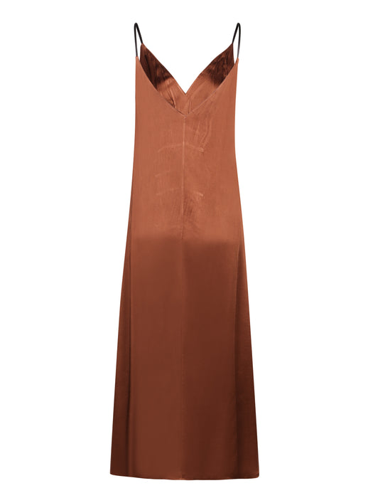 Tobacco Crepe Satin Midi Dress
