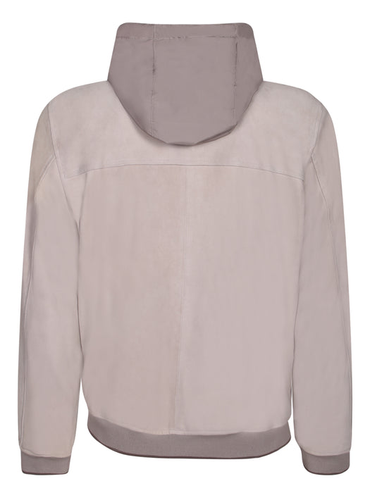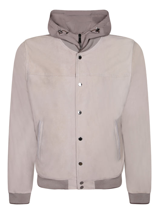Hooded Jacket Suede/Nylon Chalk