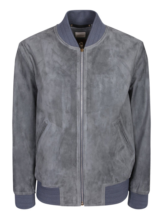Blue Suede Bomber Jacket