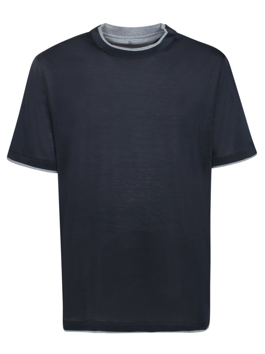 Blue Cotton Silk T-shirt Trim