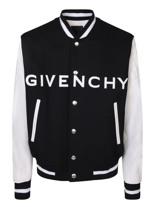 Varsity logo black bomber jacket