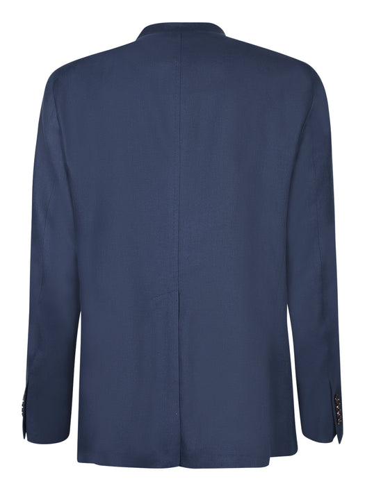 Collarless blue jacket
