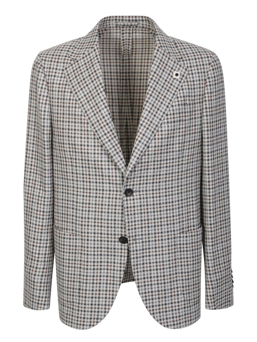 Giacca monopetto a quadretti beige