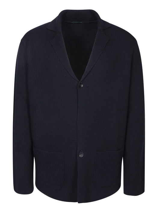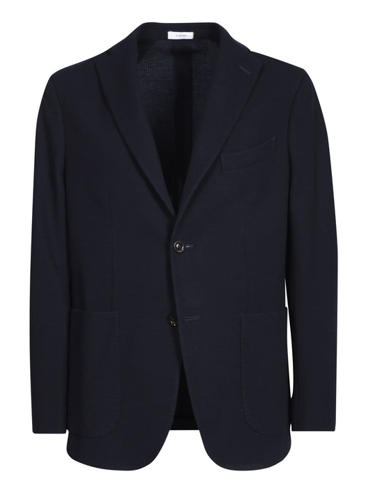Giacca blu monopetto in maglia
