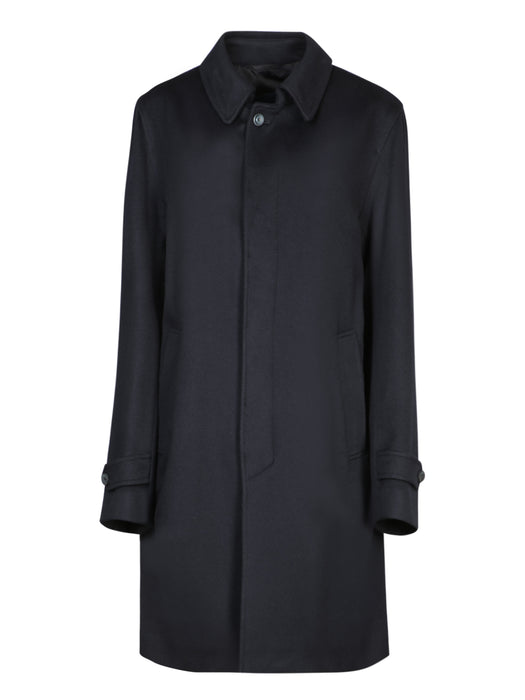 Diagonal Wool Mont Navy Three-Quarter Coat