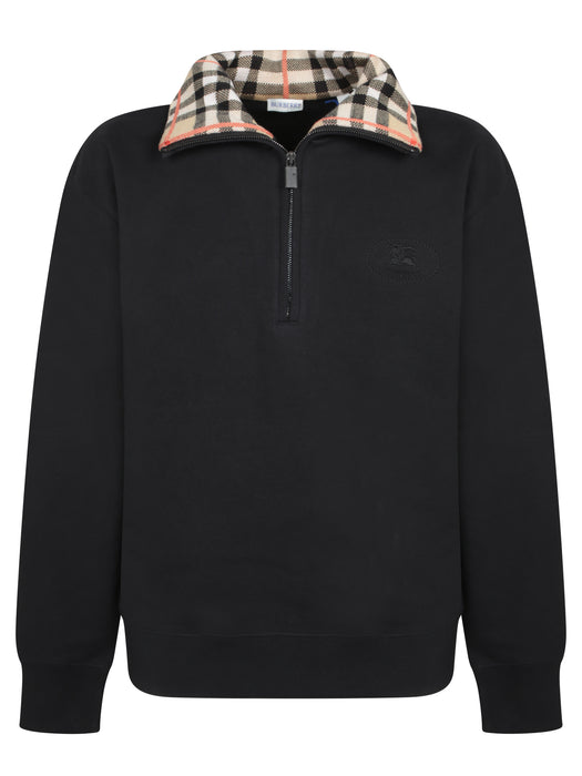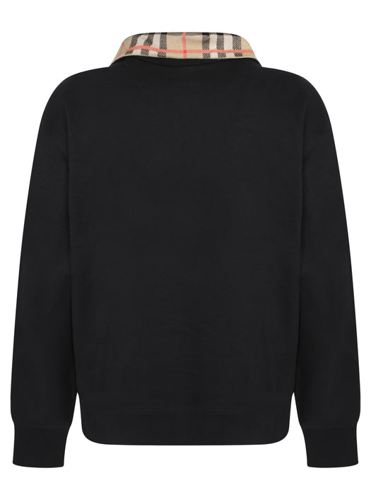 Wool Polo with Zip and Check Detail in Black Beige
