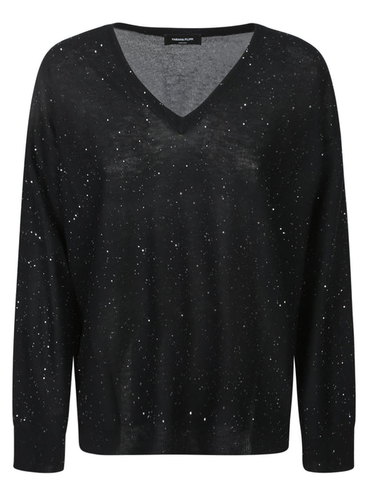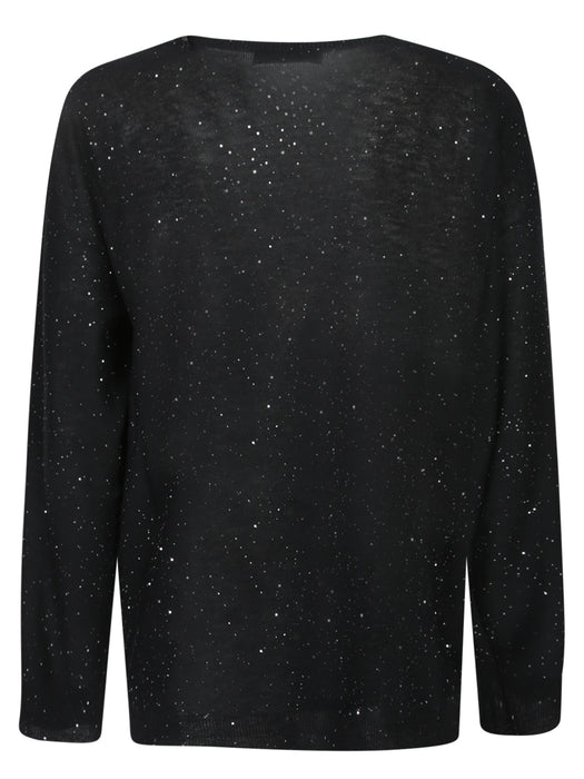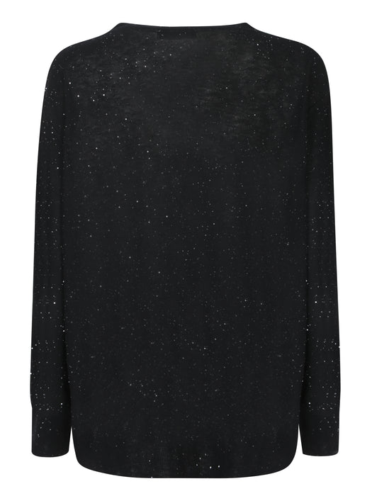 Black Sequined V-Neck Sweater