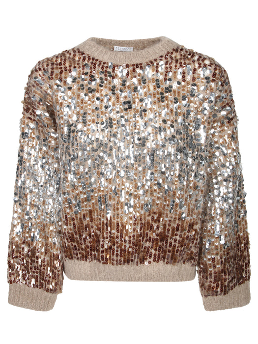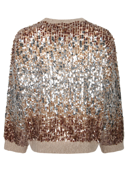 Brown Beige Sequined Sweater