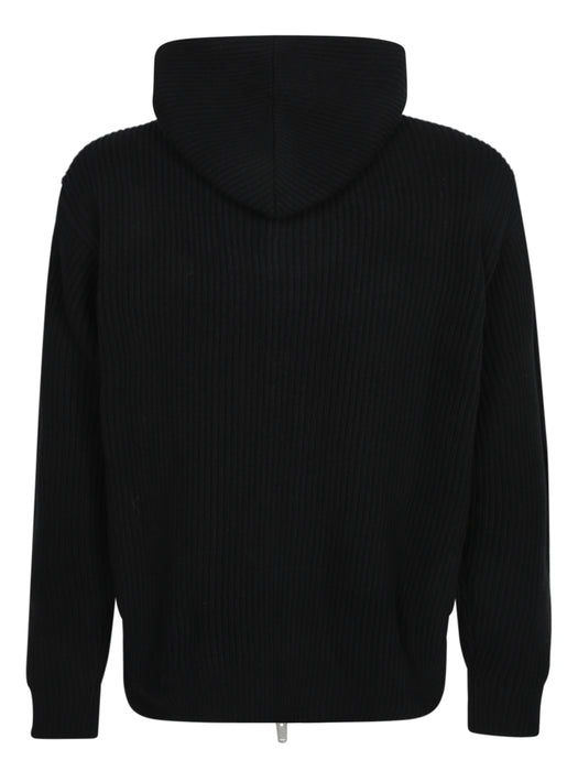 Black Cashmere Wool Hooded Zip Sweater