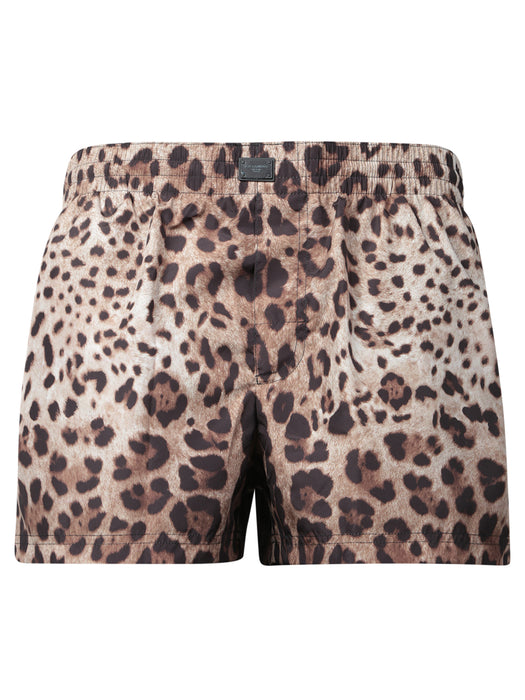 Brown Leopard Print Swim Shorts