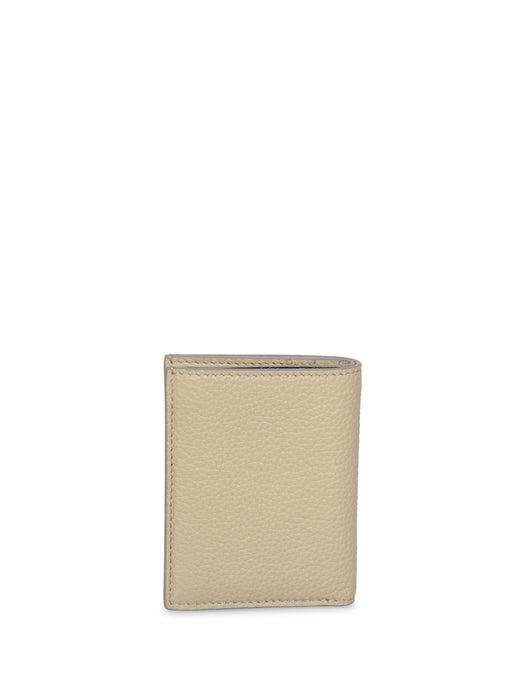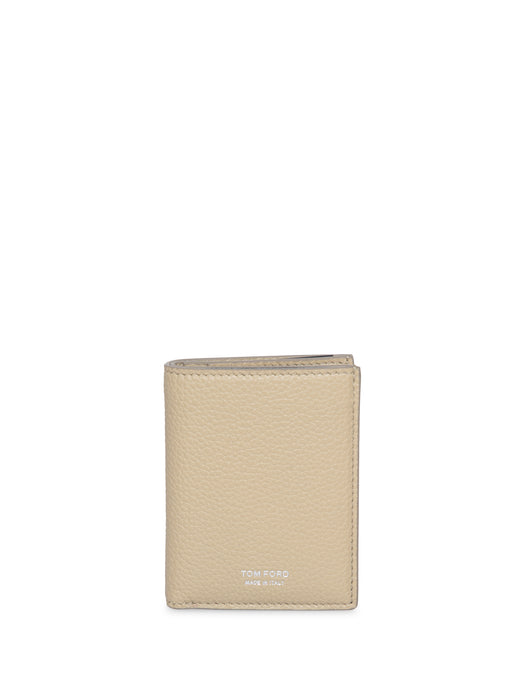 Beige Grained Leather Clip Wallet