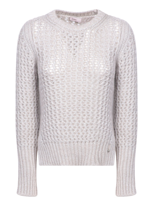 Beige Lurex Perforated Sweater