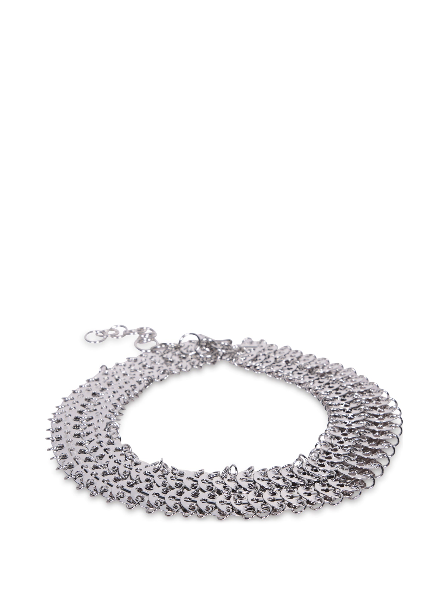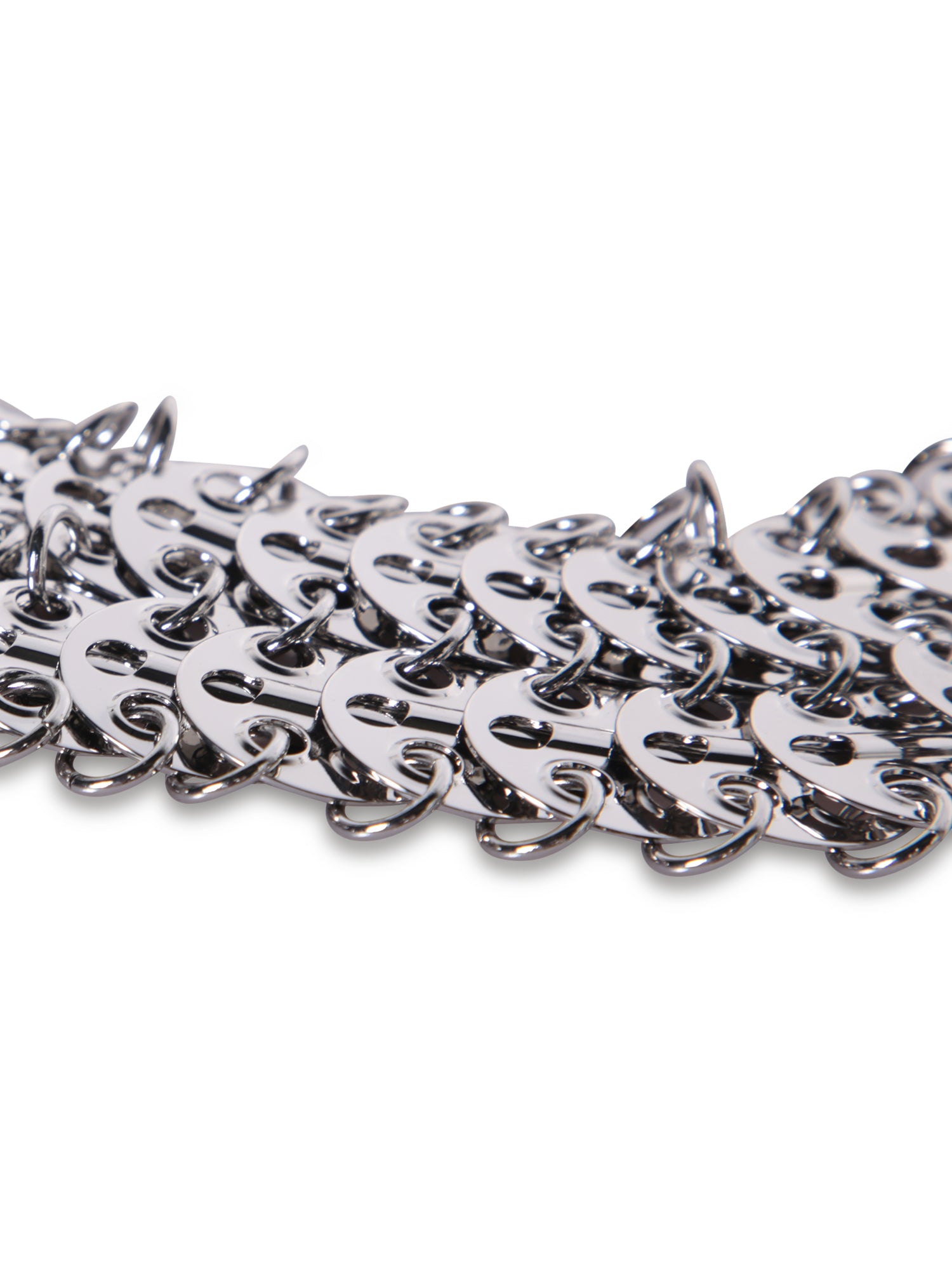Crafted from silver metal mesh. Adjustable closure. Iconic design.