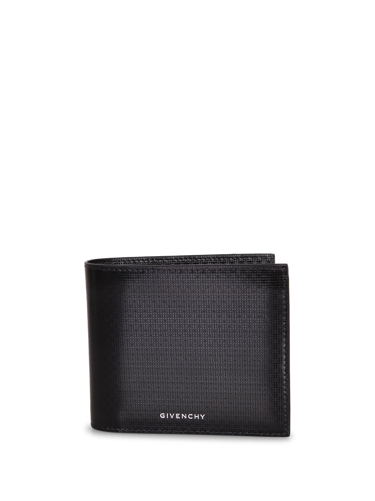Black color. Textured design. Contrasting Givenchy logo. Internal compartments for cards and coins.