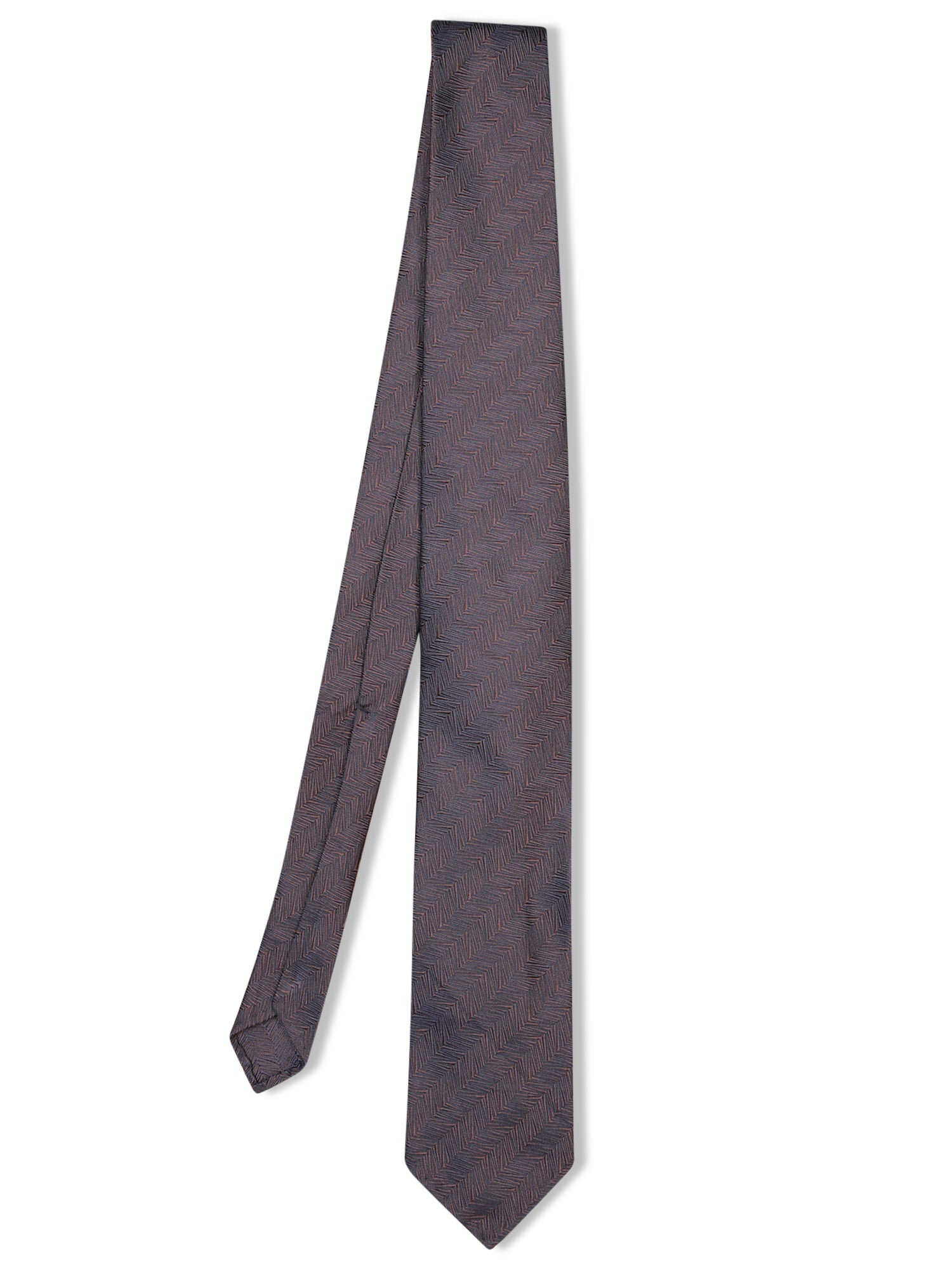 Pure silk tie featuring a herringbone pattern in brown and blue shades. Width 7cm.