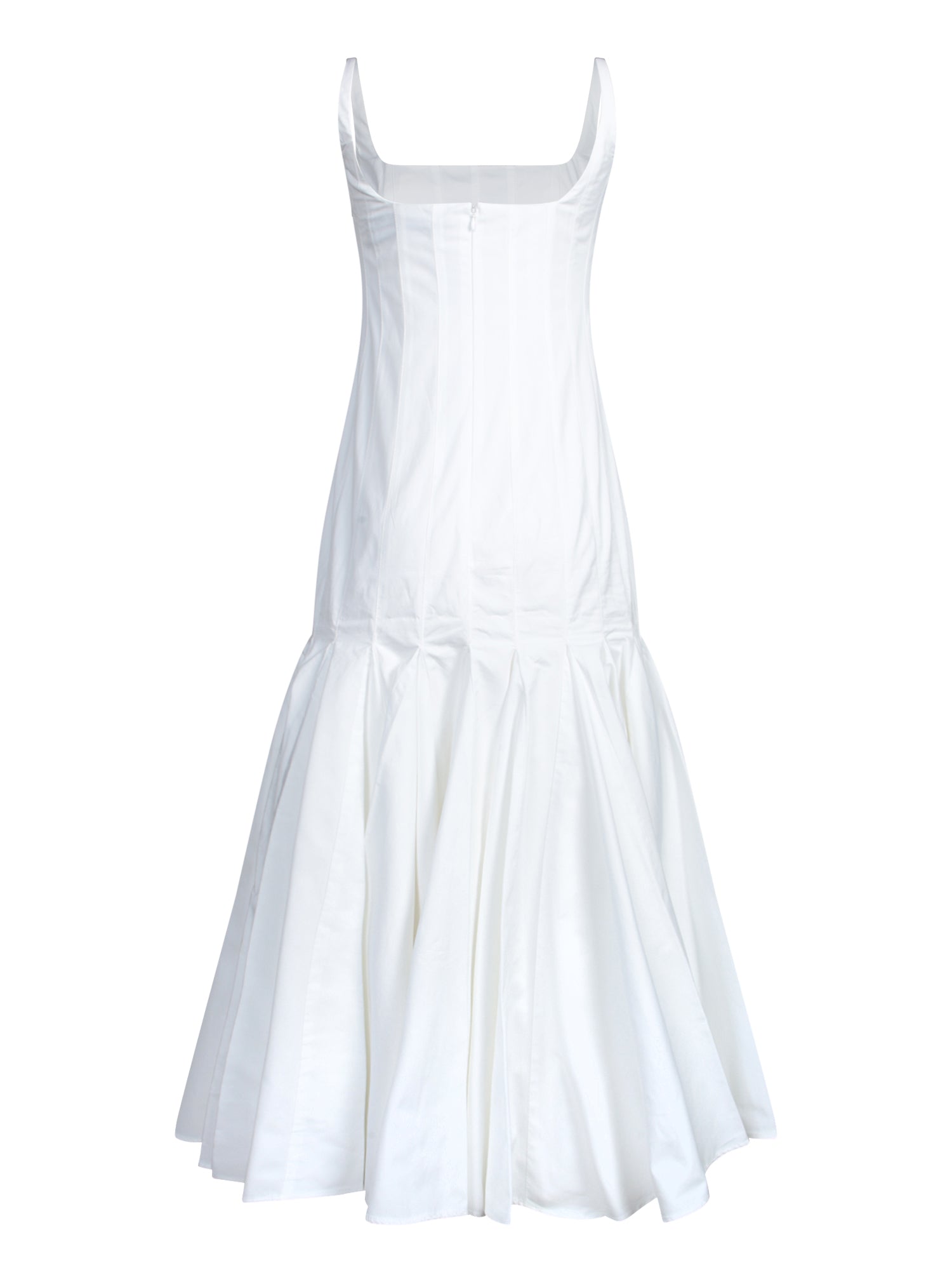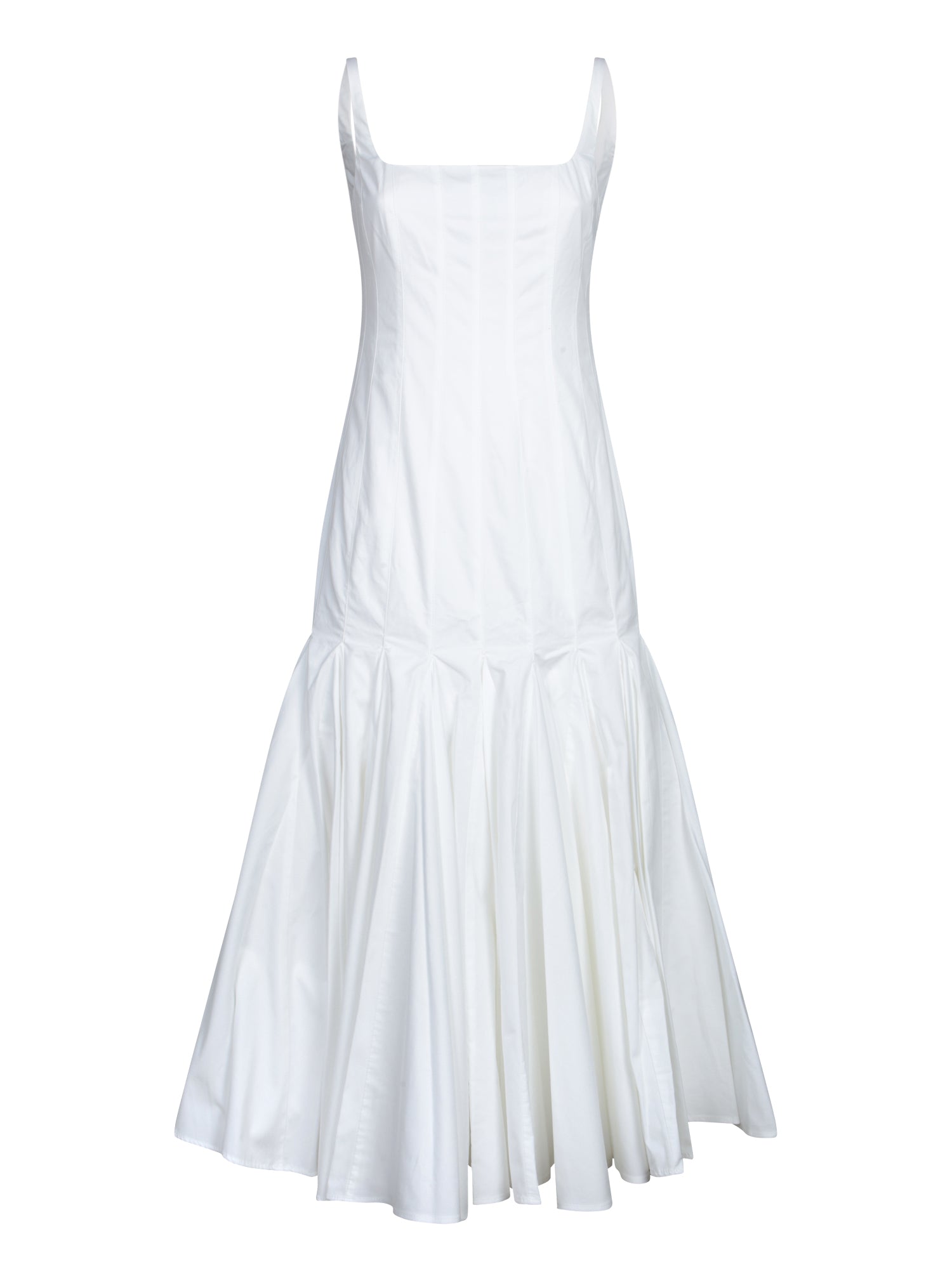 This elegant Jacquemus Agave white dress features a seductive silhouette with a delicate V-neck and a lively flared skirt, perfect for any formal occasion or summer party.