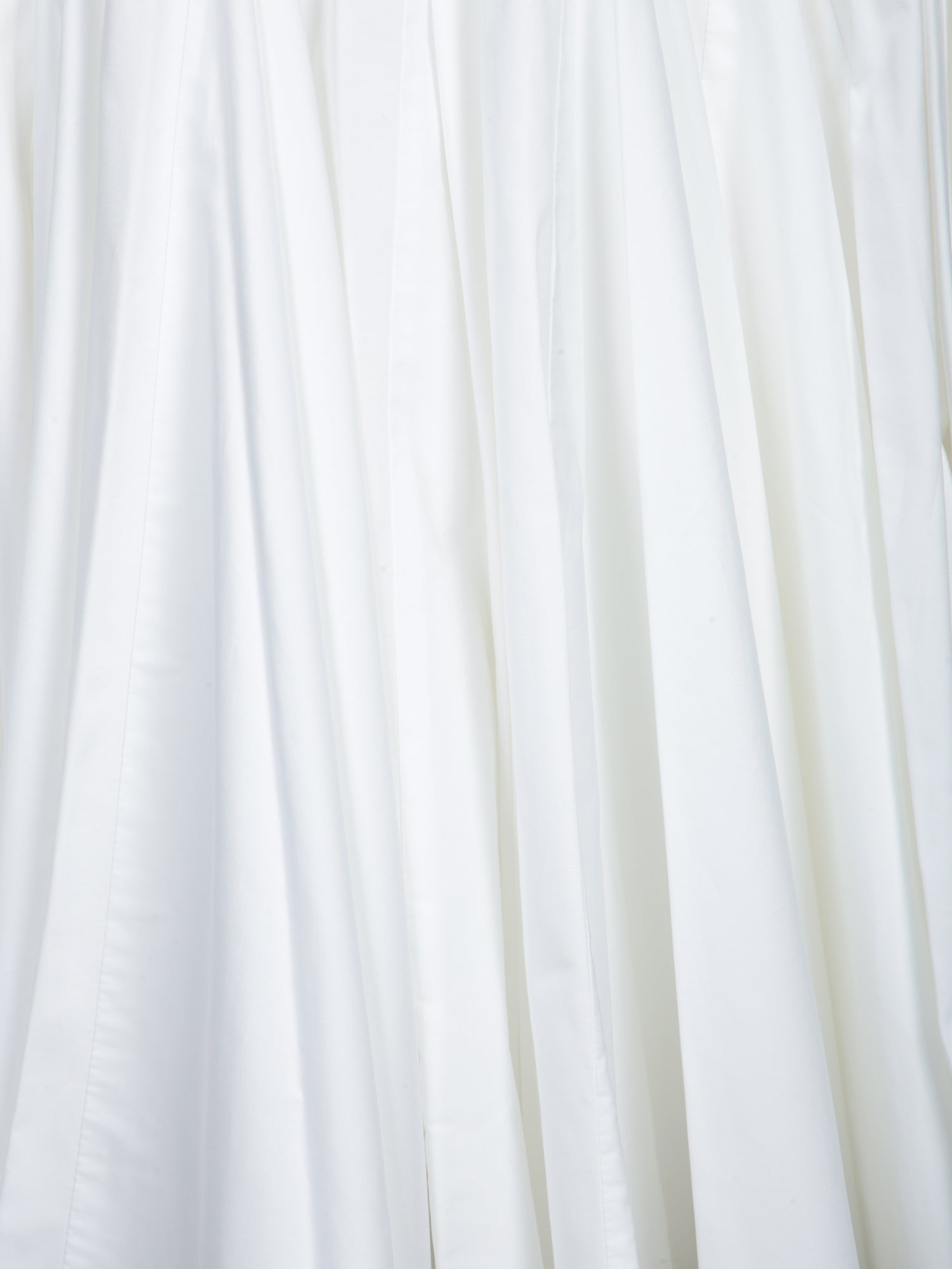 Sleeveless flared dress. Made of satin fabric. V-neckline.