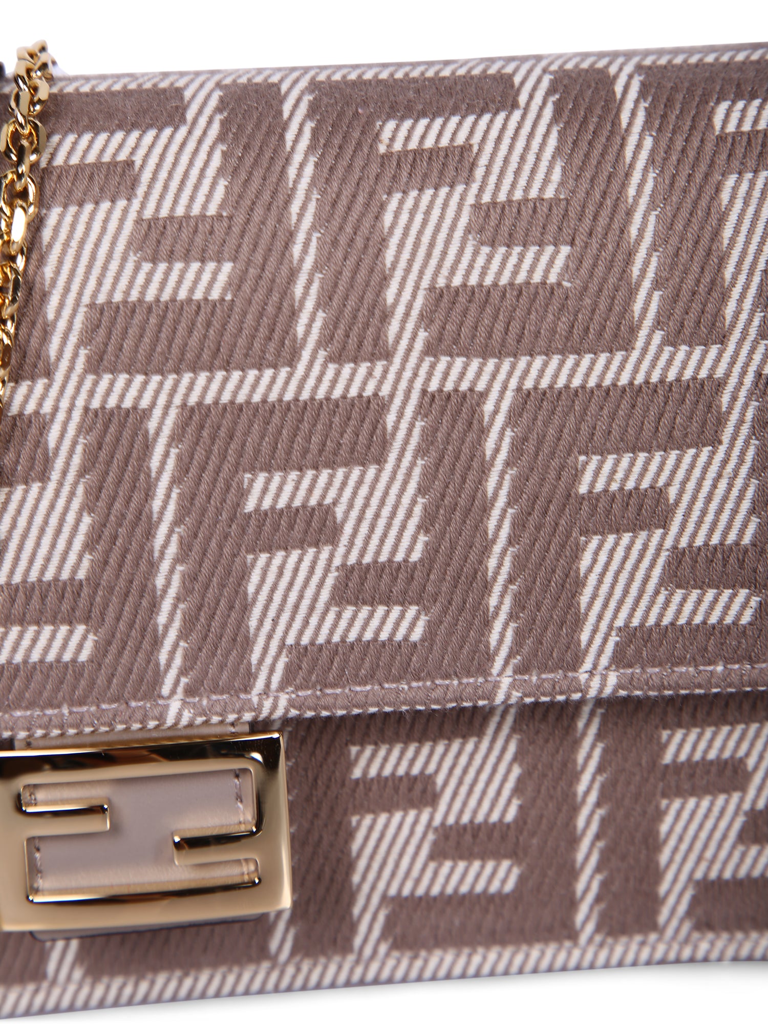 Adjustable and removable shoulder strap in jacquard. Front flap closure with buckle.