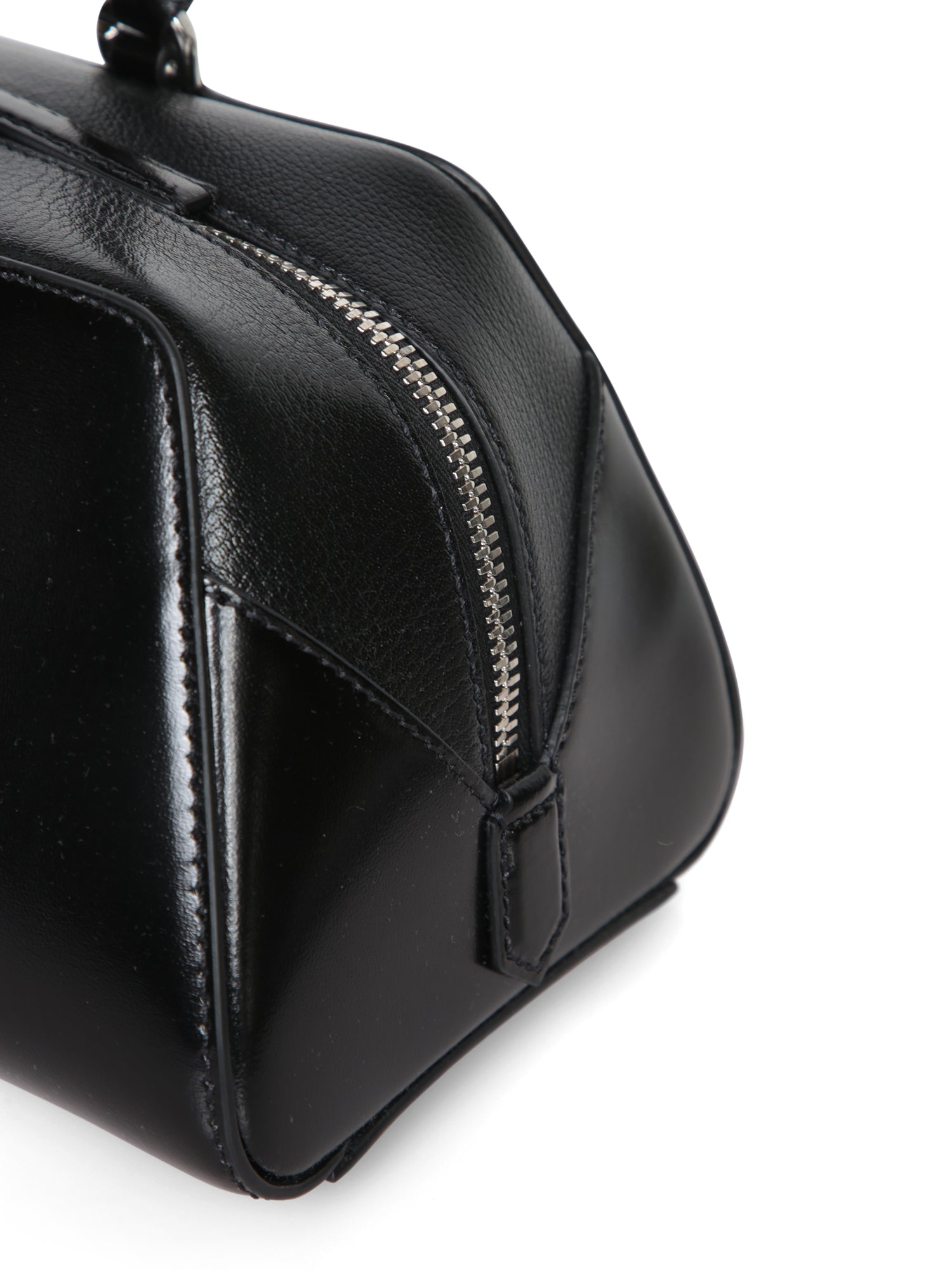 Smooth leather handbag with glossy finishes. GIVENCHY metal logo. Top zip closure.