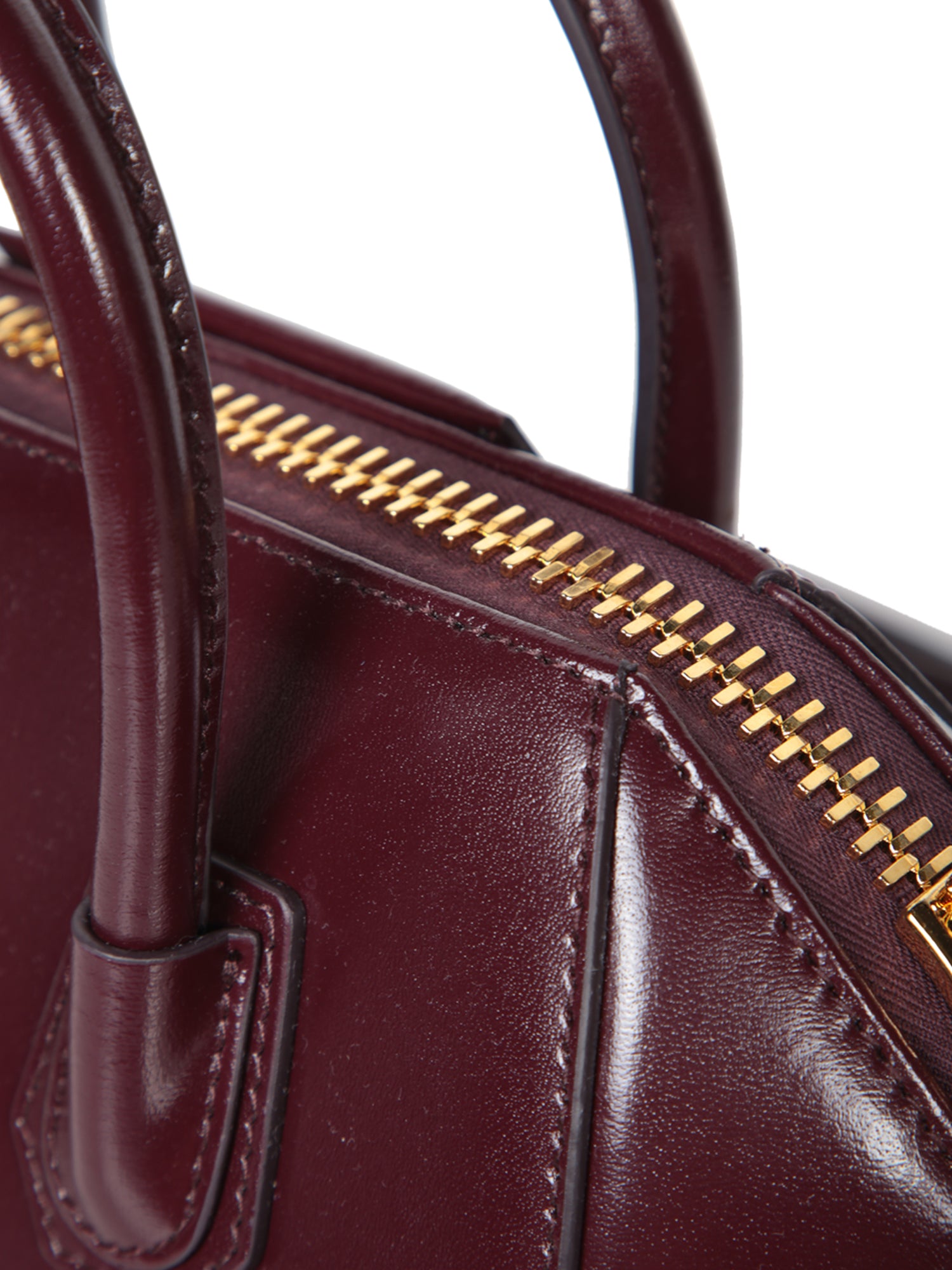High-quality leather. Top handles with an adjustable and removable shoulder strap. Top zip closure.