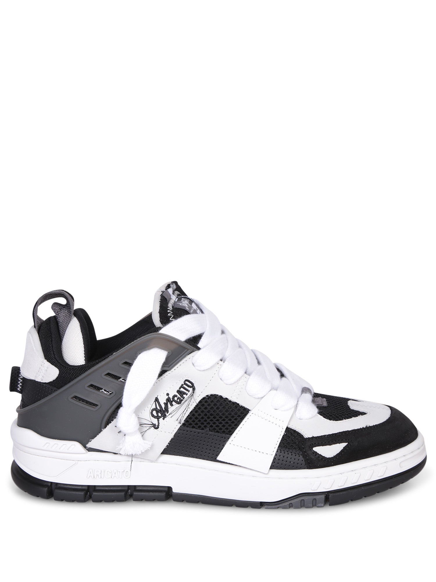 Low-top sneakers in leather and technical fabric. Patchwork design with mesh details. Rubber sole.