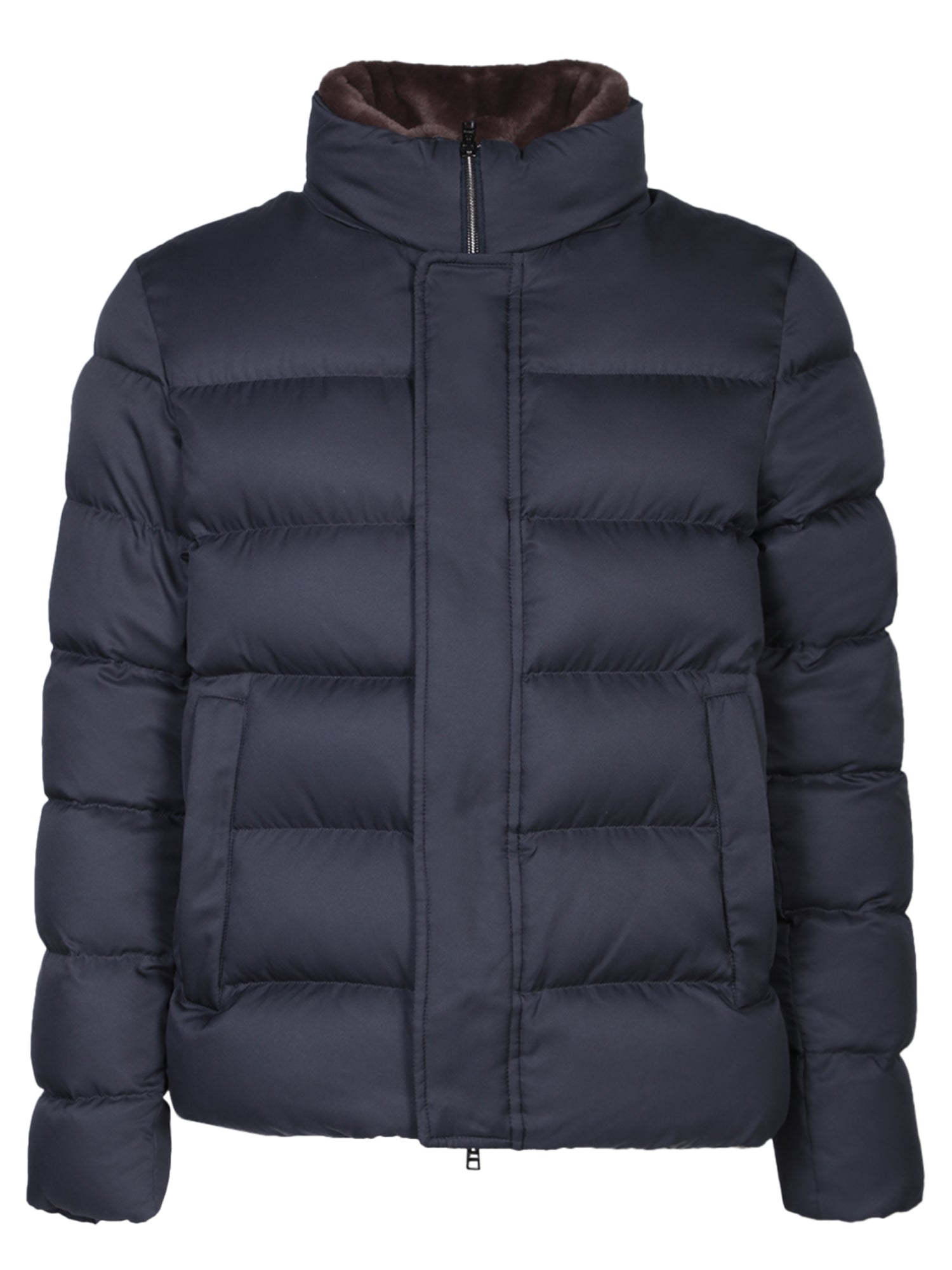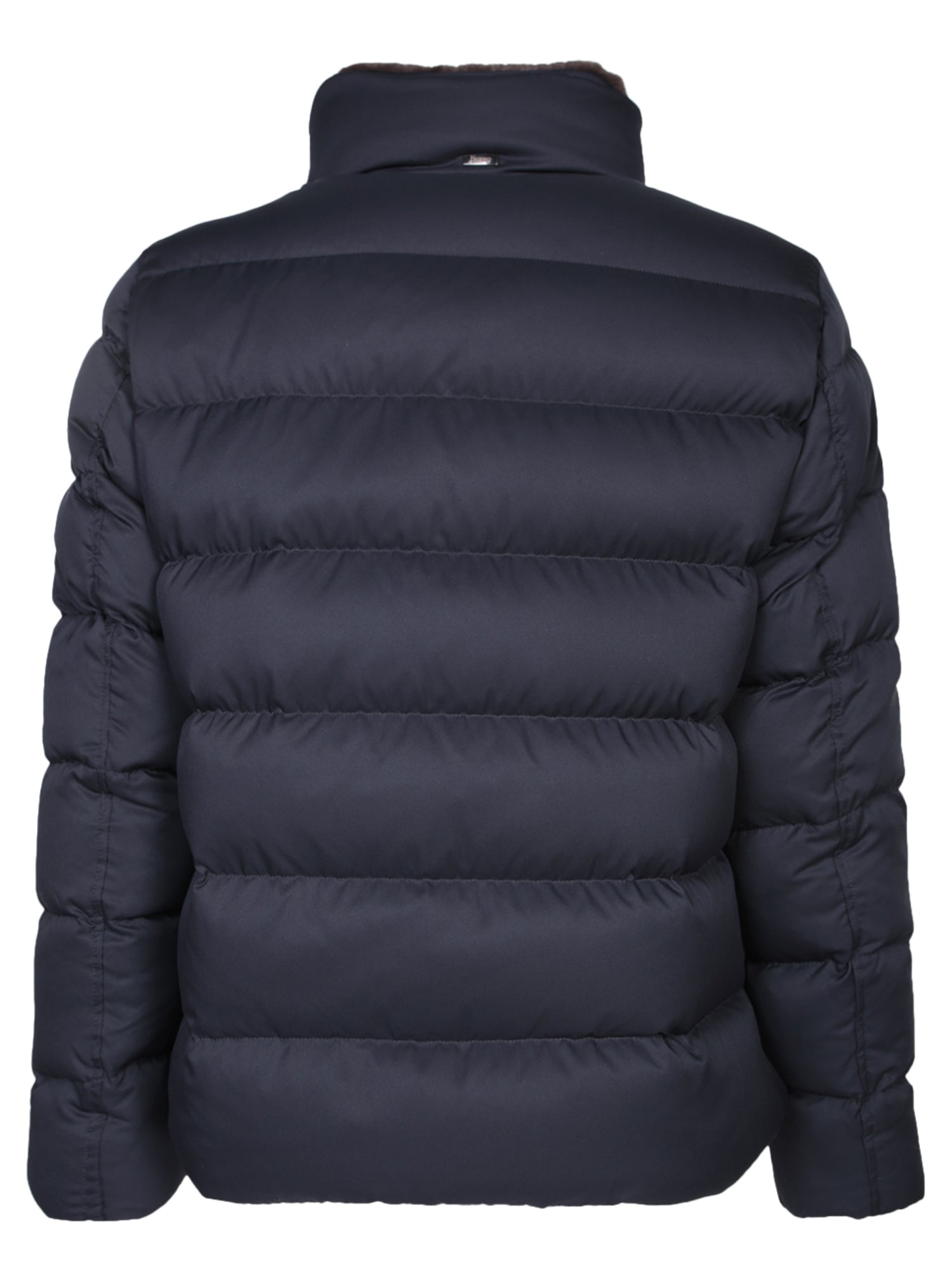 Designed to blend style and comfort, Herno's Arendelle Puffer in blue features an elegant faux fur lining that adds a touch of luxury, ideal for colder days.