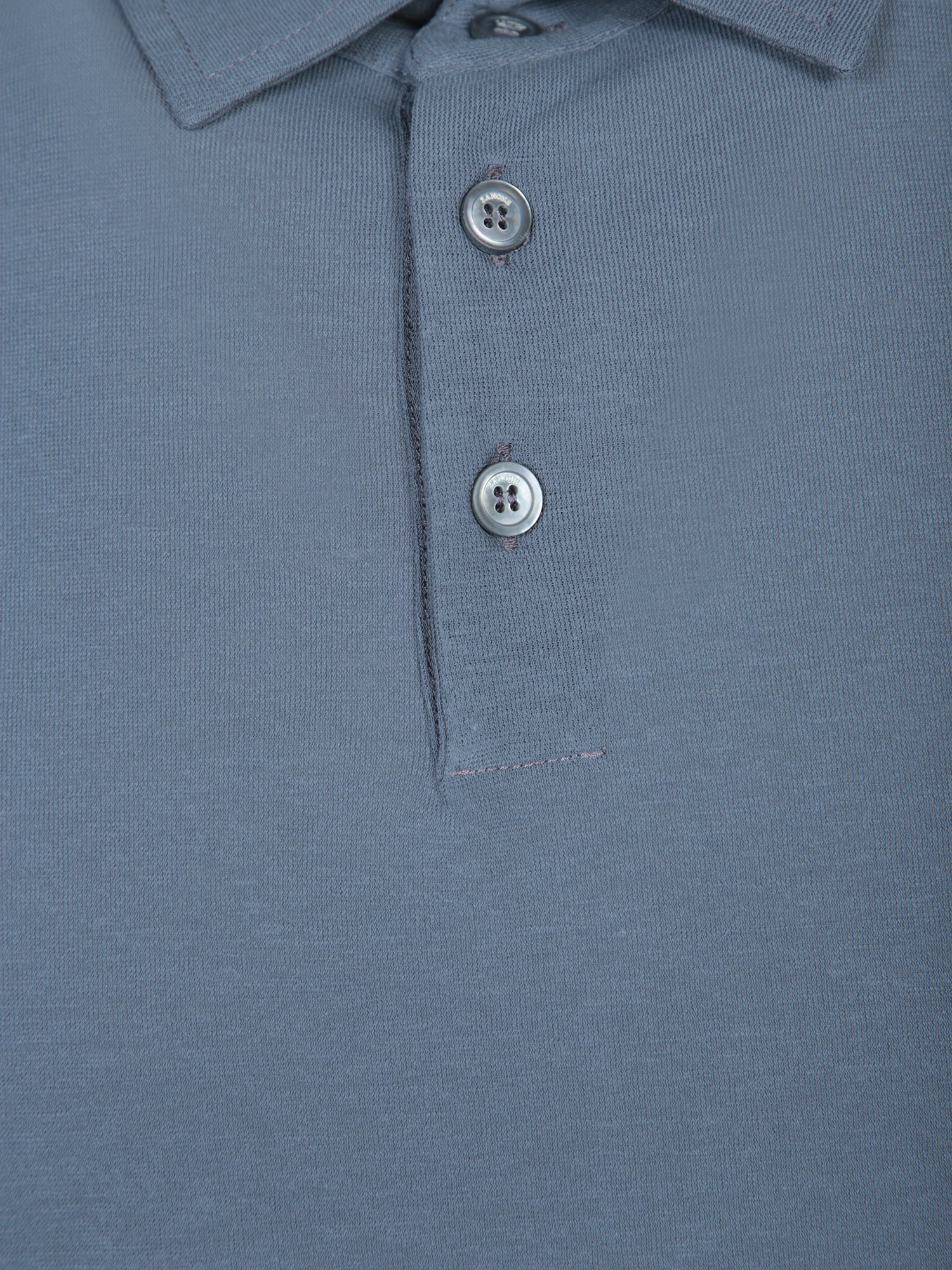 Short sleeve polo. Classic spread collar. Three-button front placket.