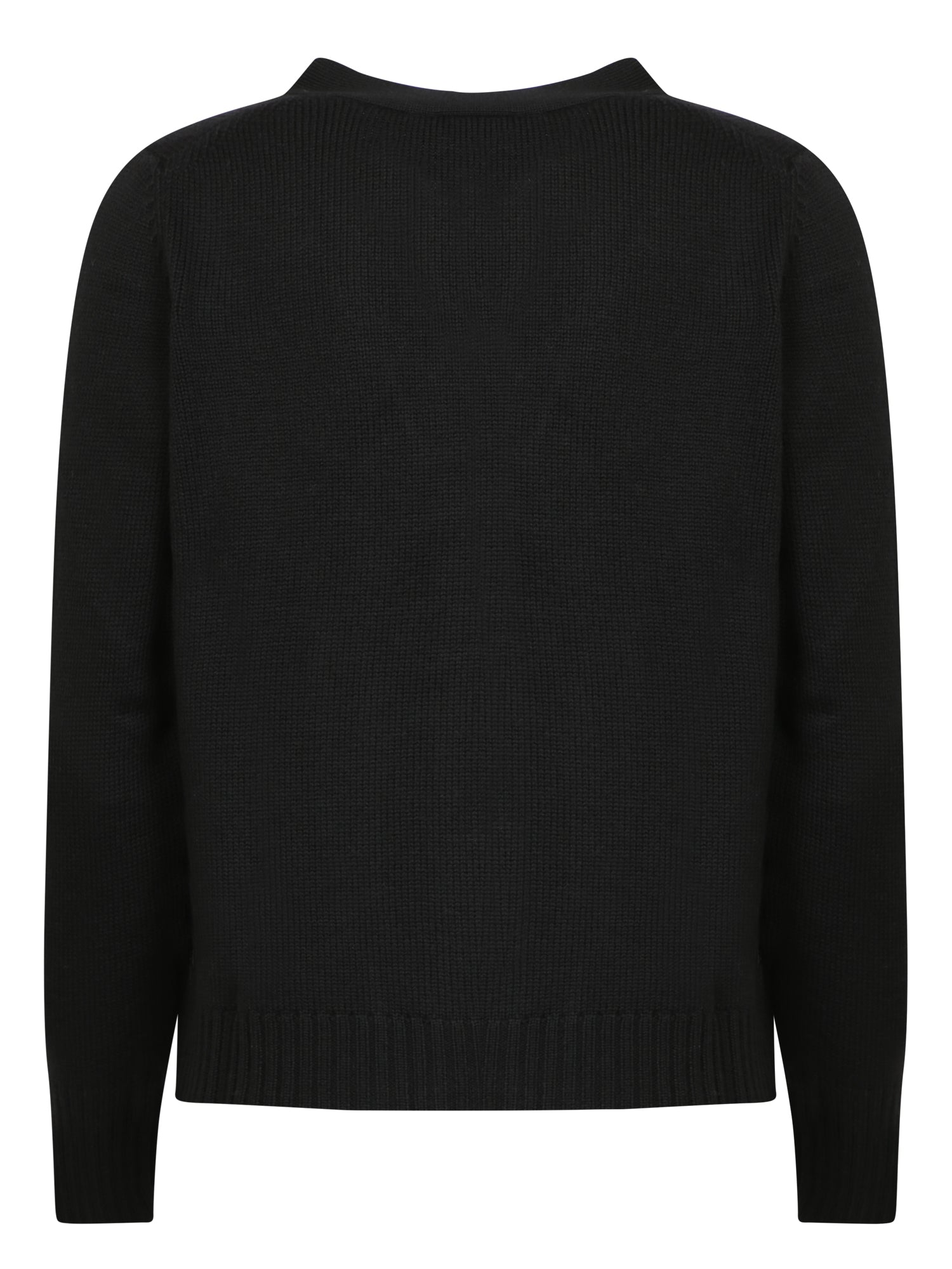 Crafted from high-quality fabric, this black cardigan by Blanca Vita features a classic design with a V-neck and button closure, perfect for versatile and sophisticated looks.