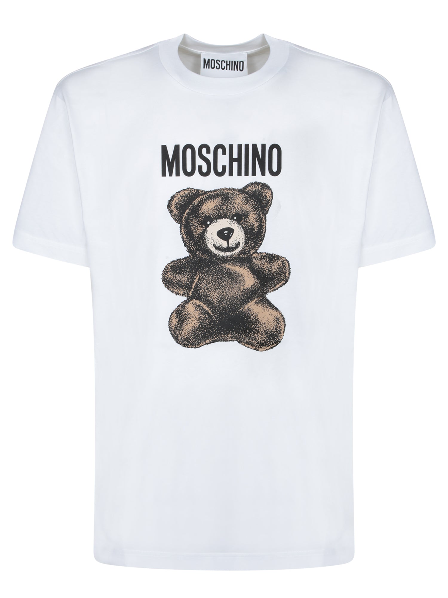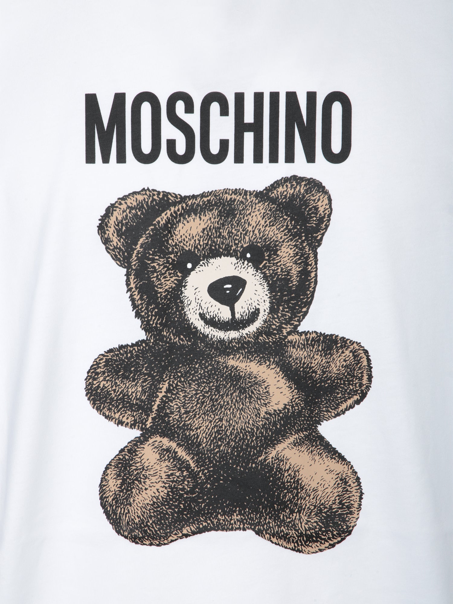 Explore playful styling with this MOSCHINO T-shirt, featuring an iconic bear print combined with a bold logo front in striking contrast.
