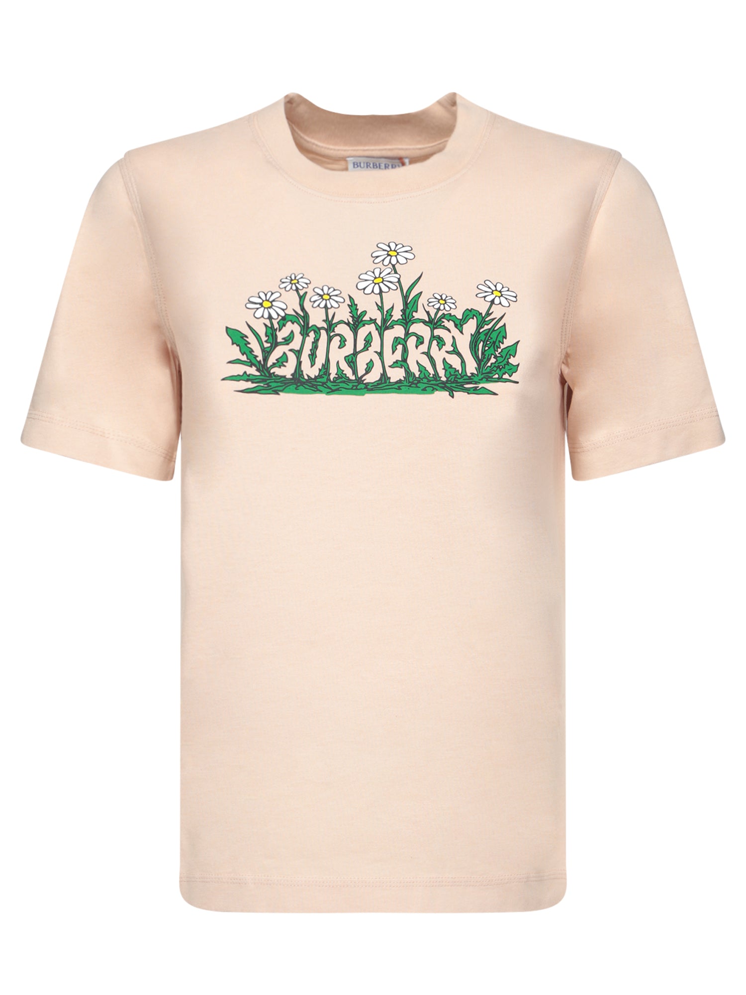 This Burberry beige cotton T-shirt features a vibrant floral print on the front that captures the spirit of spring. Perfect for an everyday look that stands out.