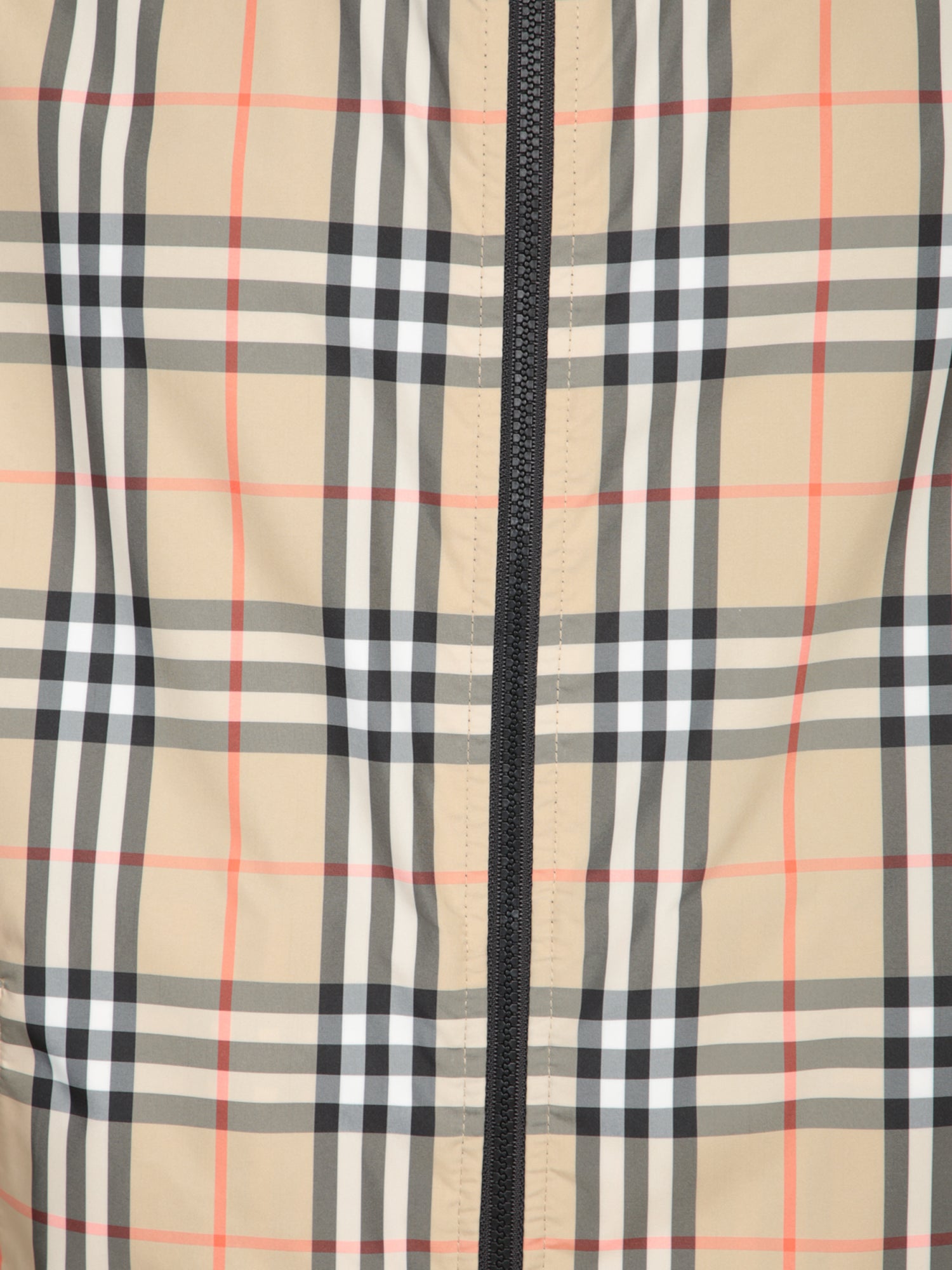 Hooded jacket. Front zip closure. Iconic check pattern.
