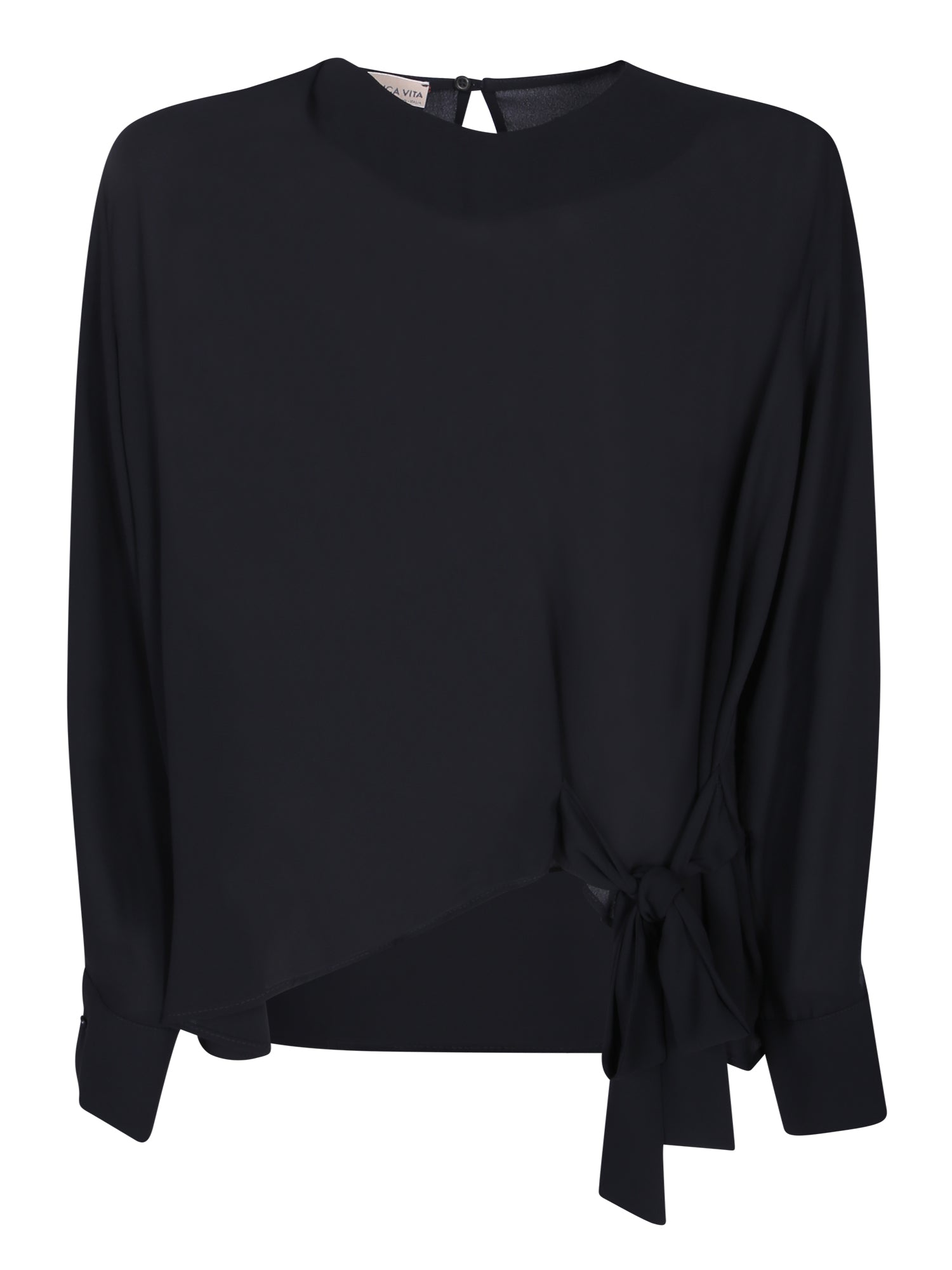 Black Crepe Bow Blouse
