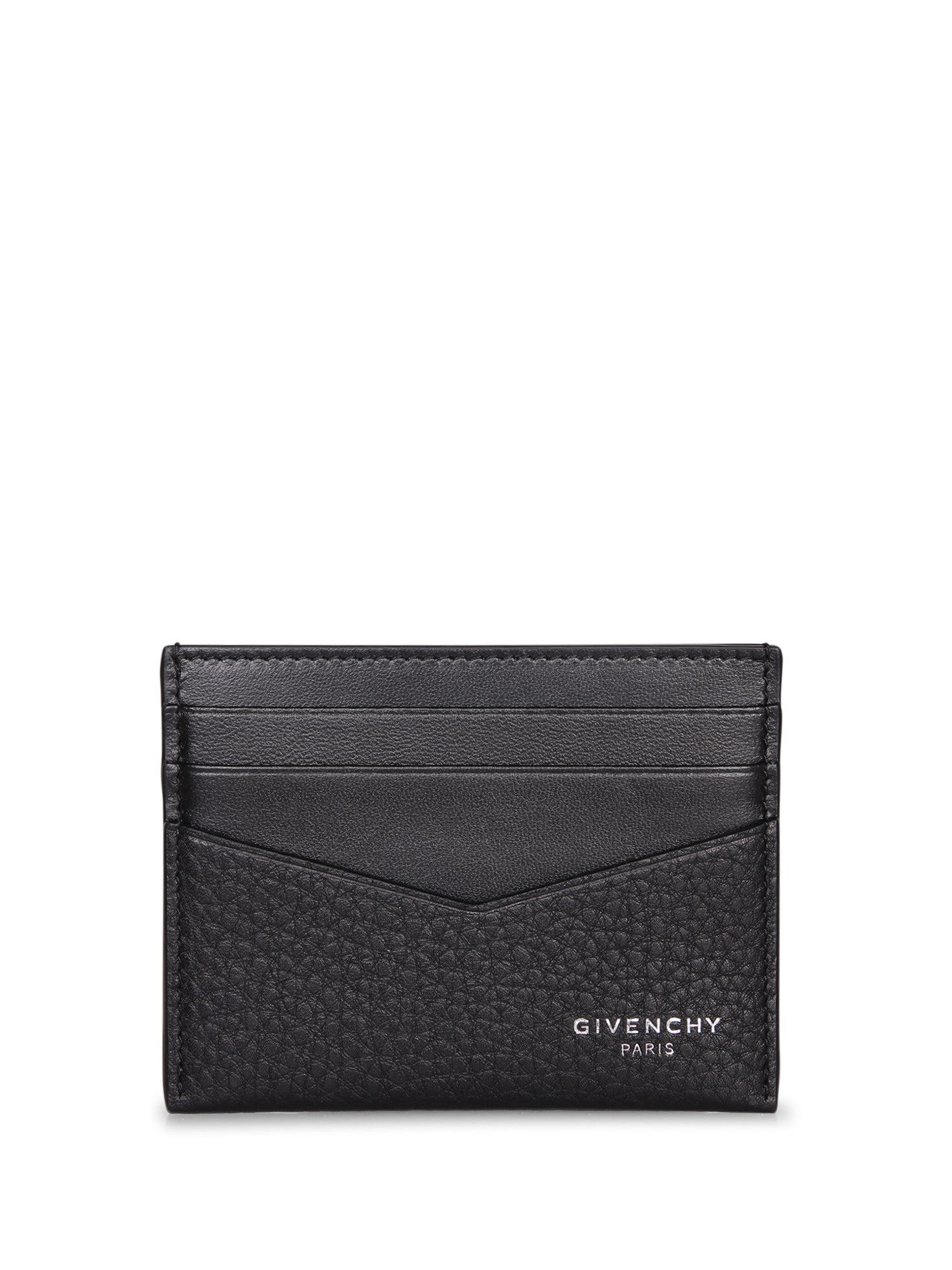 Crafted from embossed leather. Features card slots and a silver front logo.