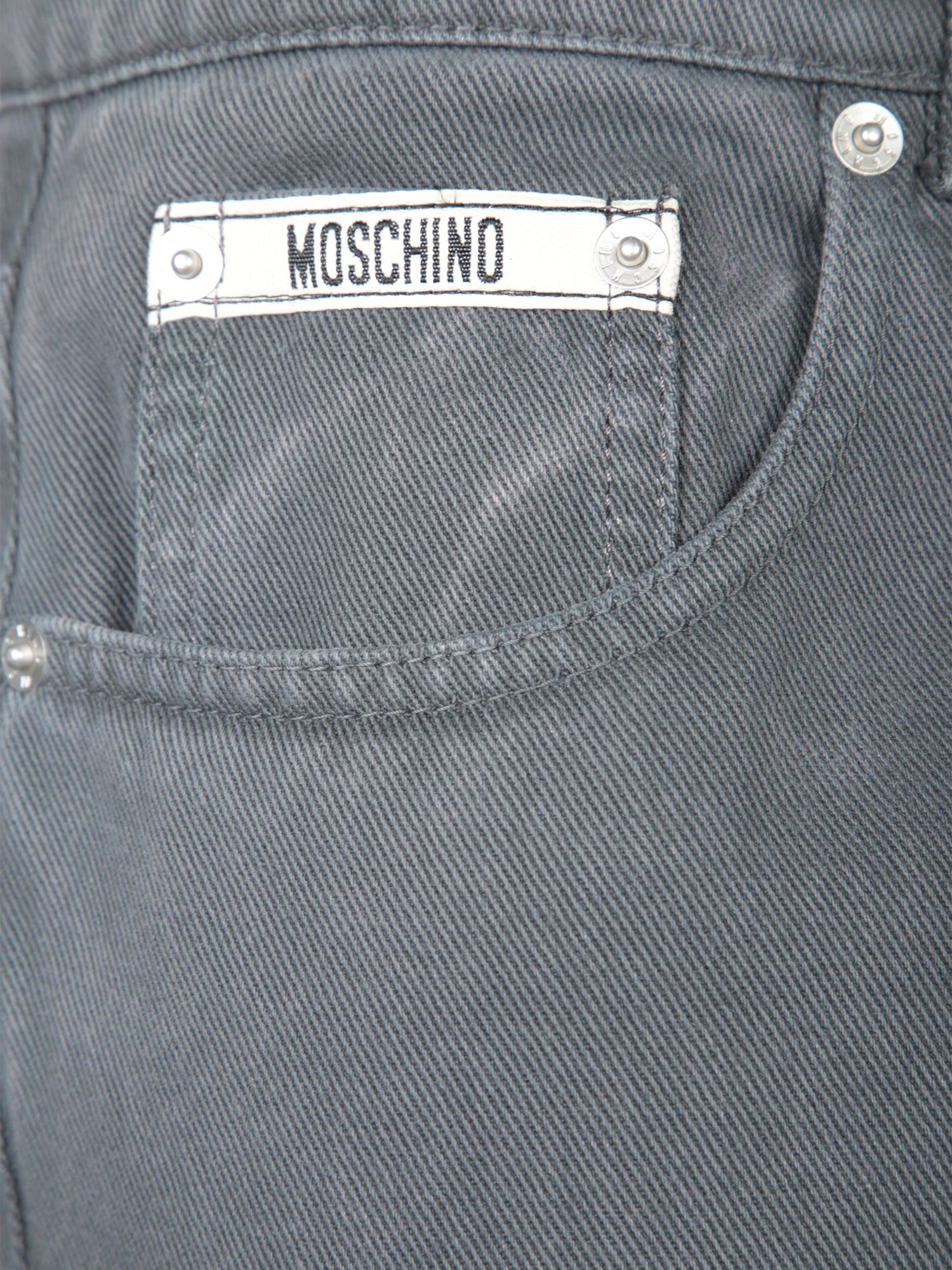 A timeless piece reimagined with a modern touch: these Moschino jeans feature a classic silhouette infused with contemporary details such as a subtle logo and a charcoal black finish.