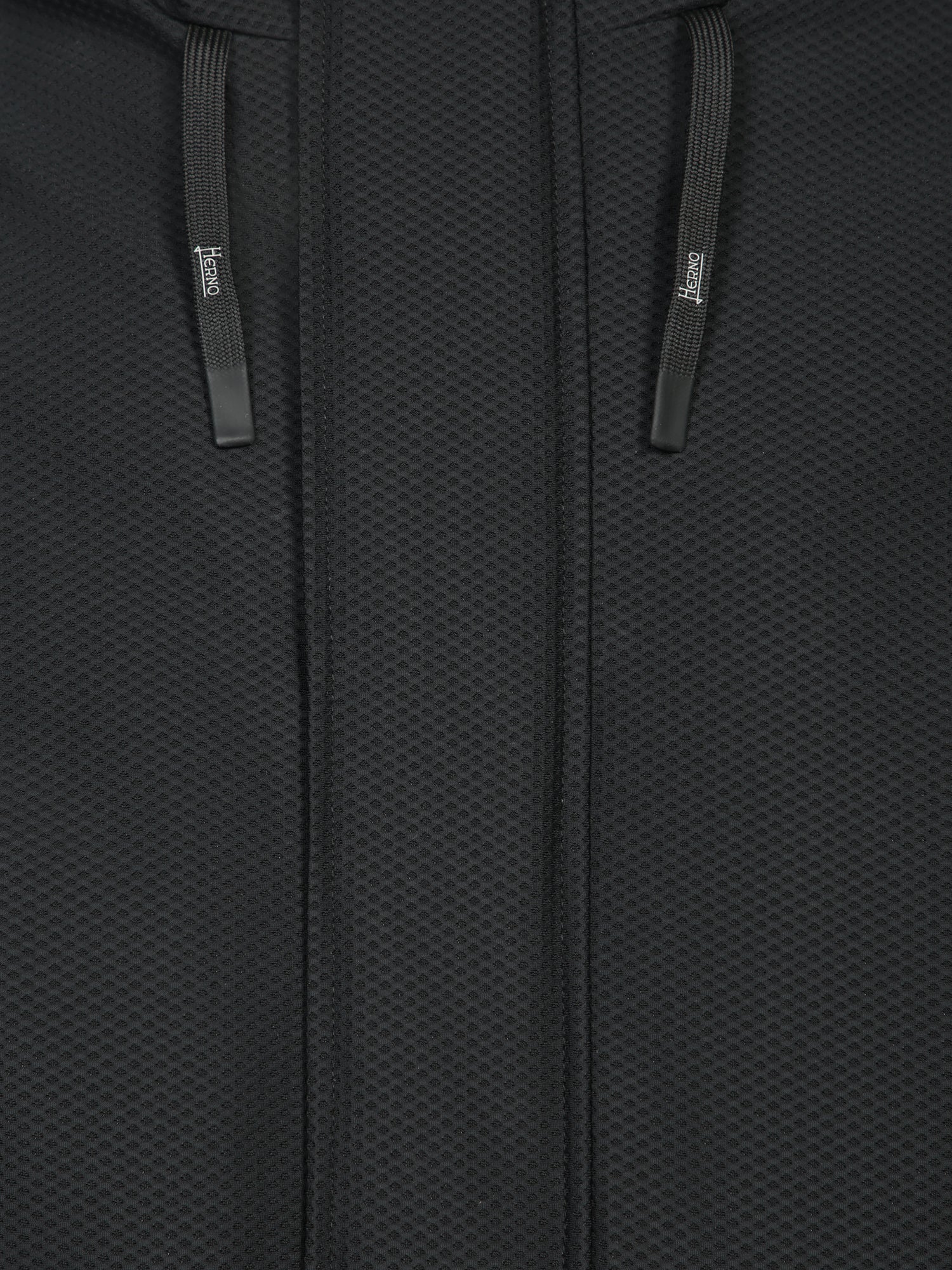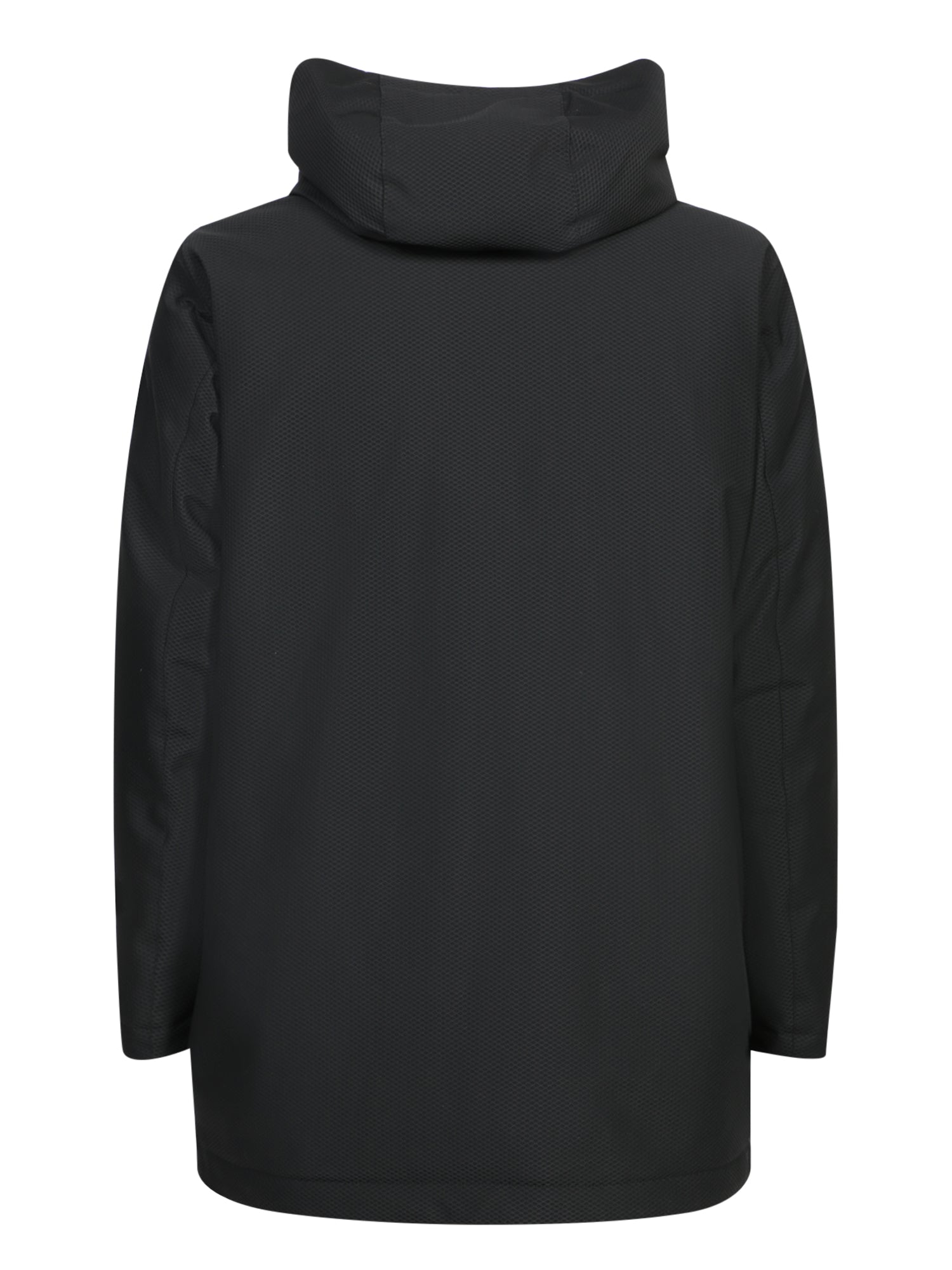 Elegant black padded coat by Herno, perfect for a sophisticated look on cold days. Features a minimalist design with modern functionalities such as an adjustable hood and secure zip pockets.