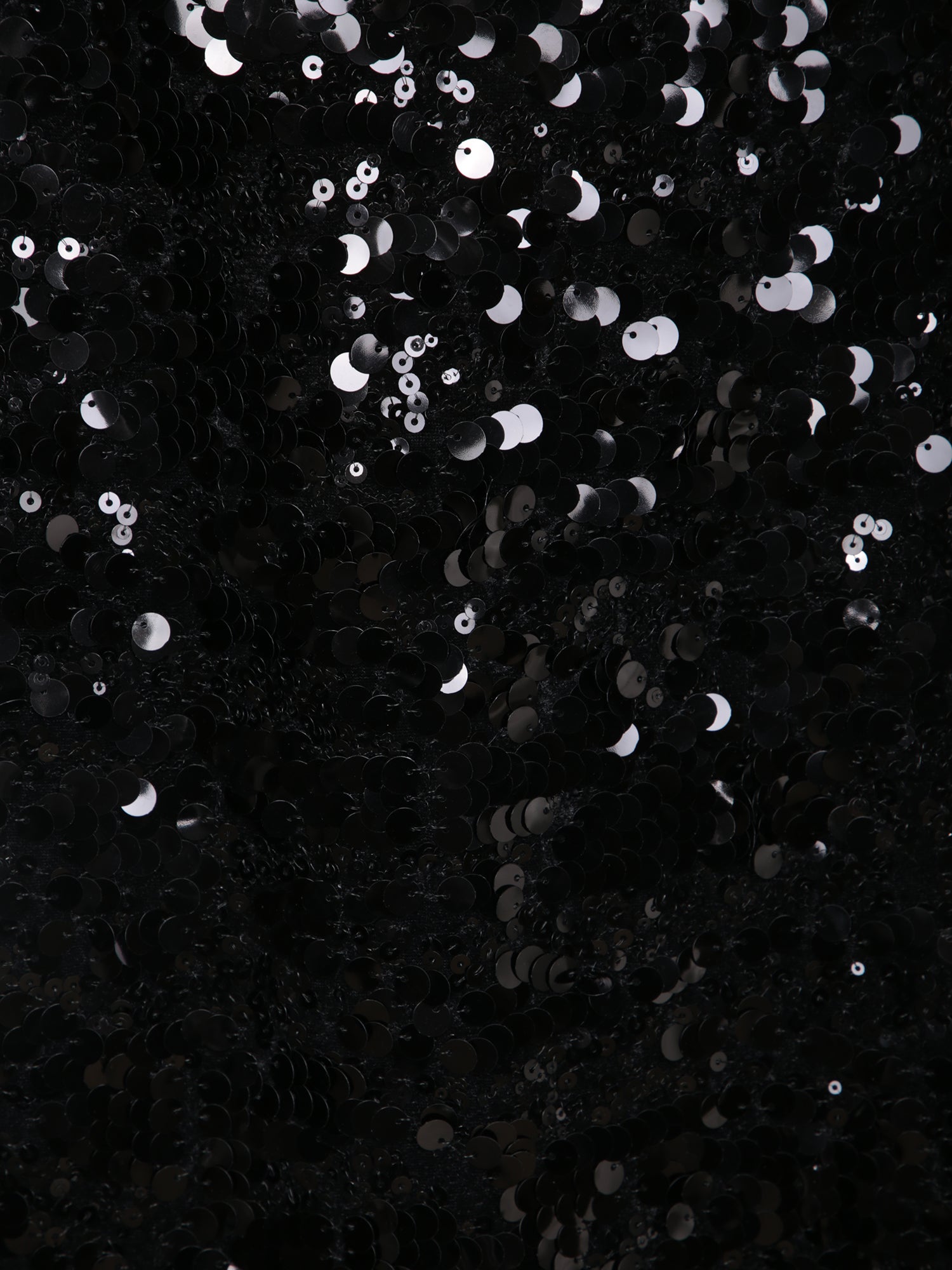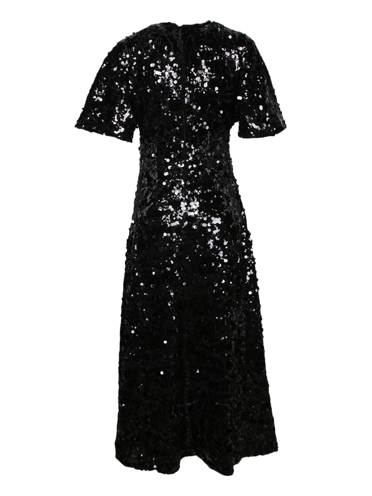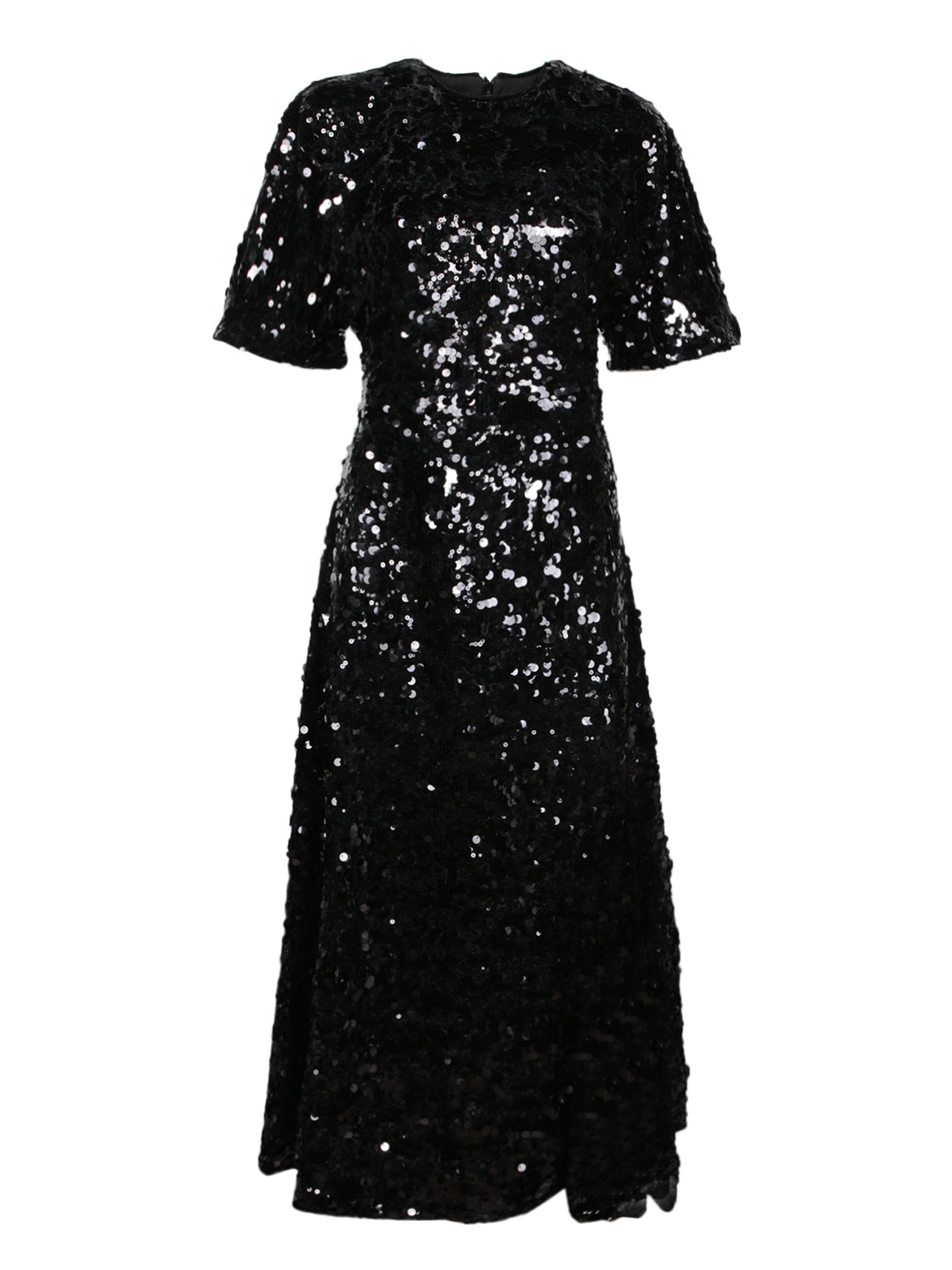 Short-sleeve midi dress in black sequins. Round neckline and regular fit.