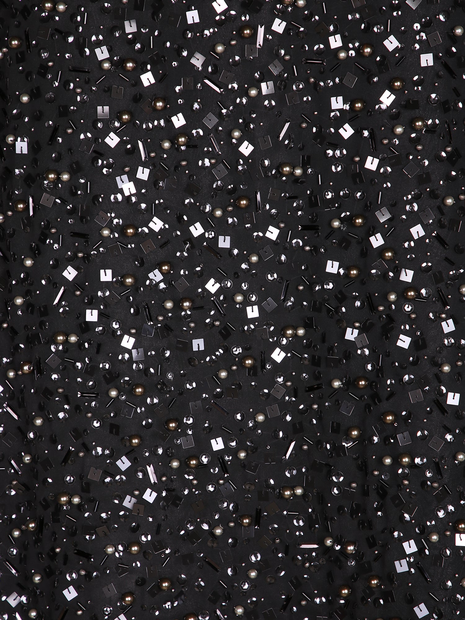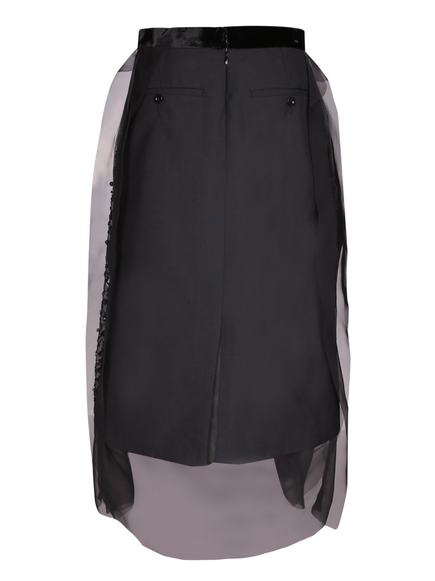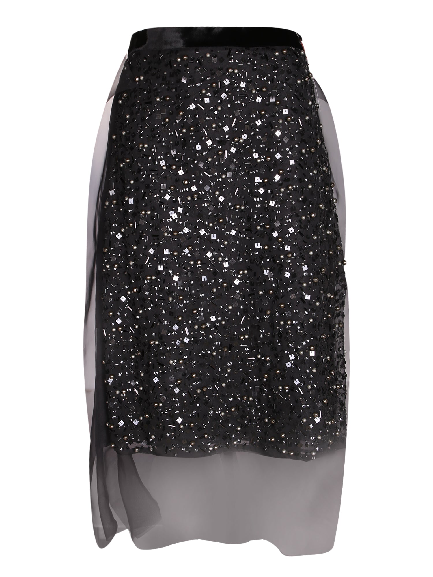 Midi skirt in transparent fabric with black sequins. Partially lined. Side closure with hidden zipper.