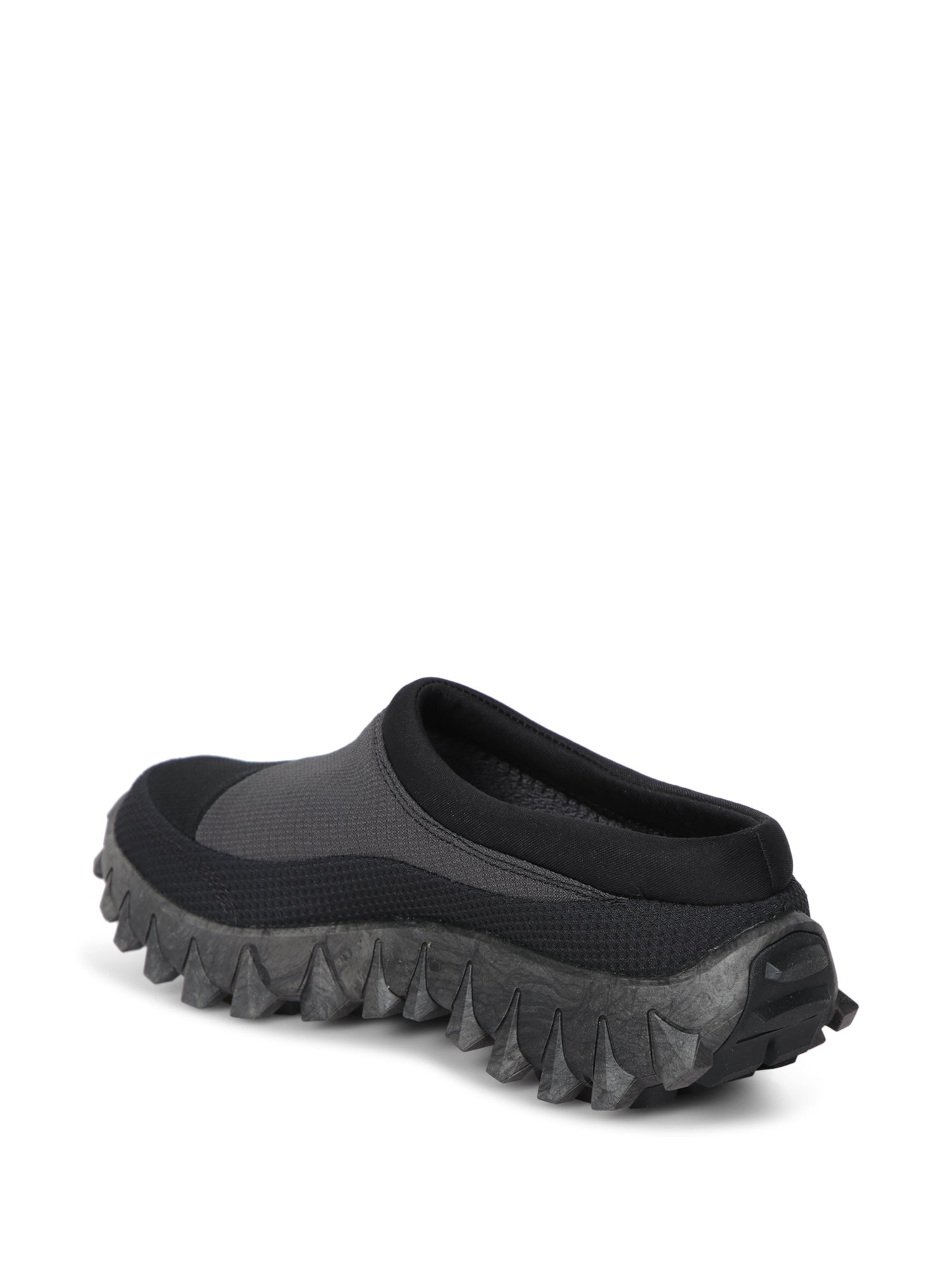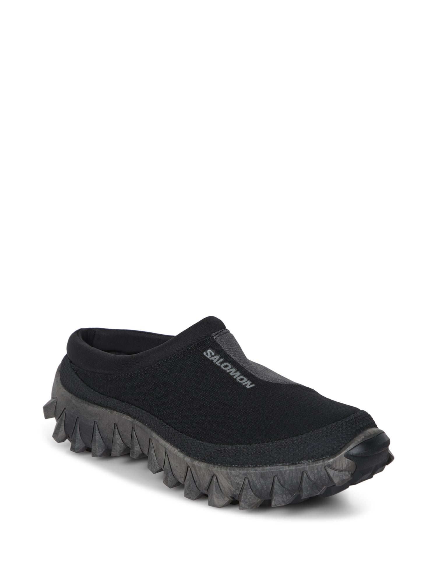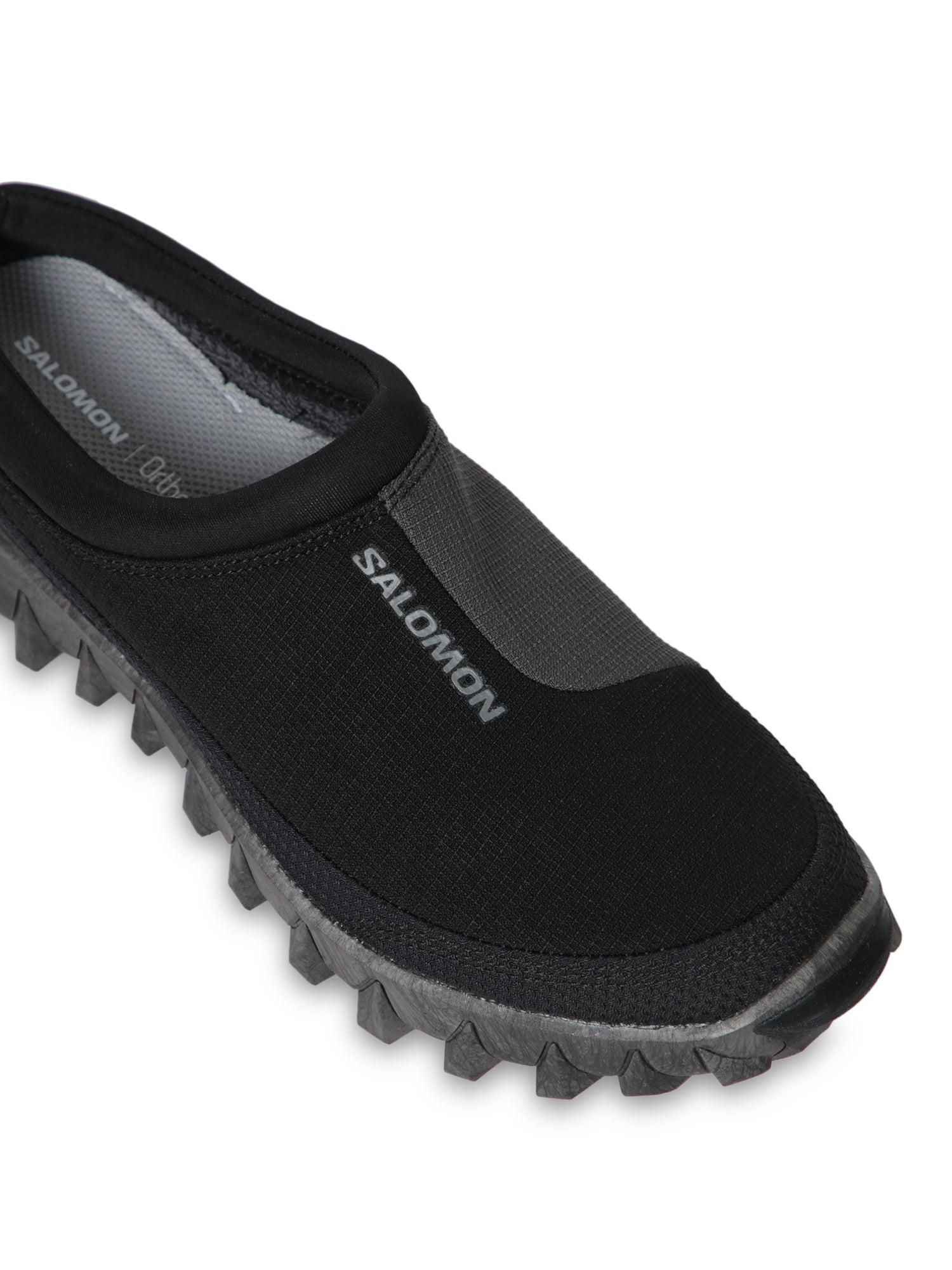 Designed for comfort and functionality, this black Salomon slip-on sneaker features a breathable fabric upper with a rugged grooved outsole, perfect for any urban adventure or casual outing.