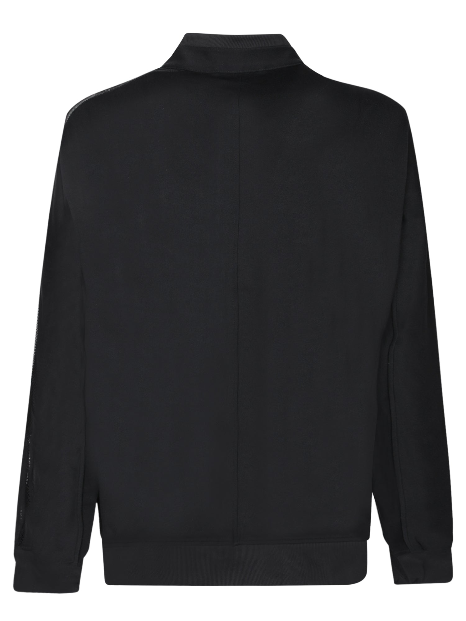 Sporty jacket with zip closure. Transparent inserts on the shoulders. Stand-up collar.