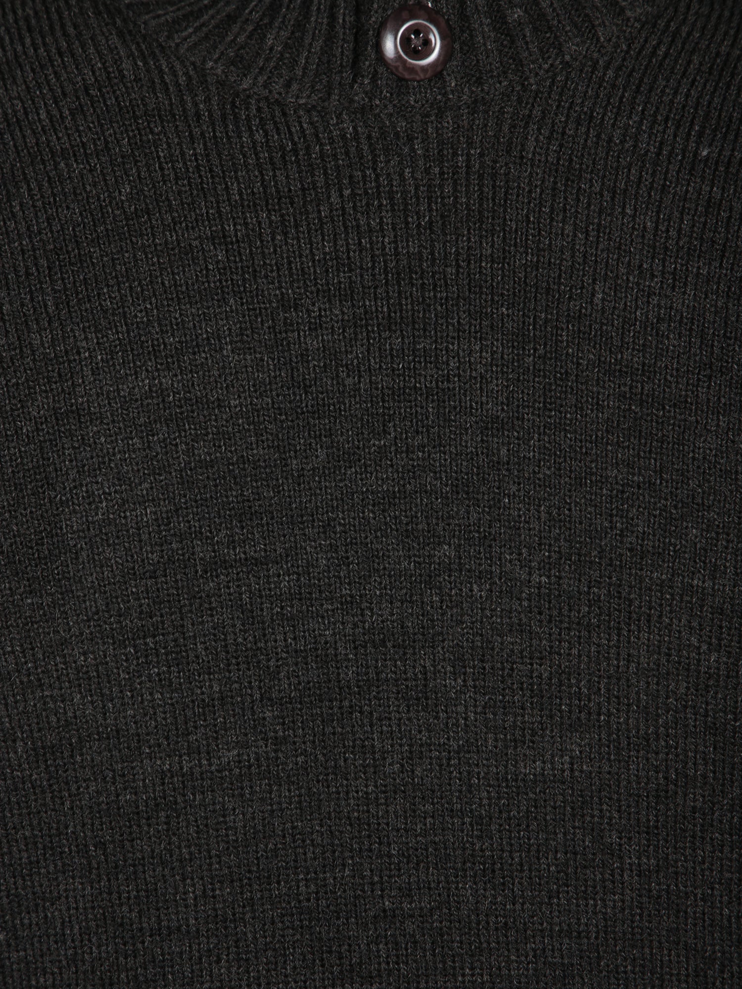 High collar with button closure. Long sleeves. Knitted fabric.